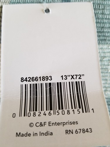 Table runner measures 13" wide x 72" long