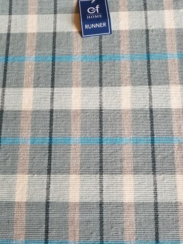 Runner is in a striped pattern of green ~ blue ~ beige