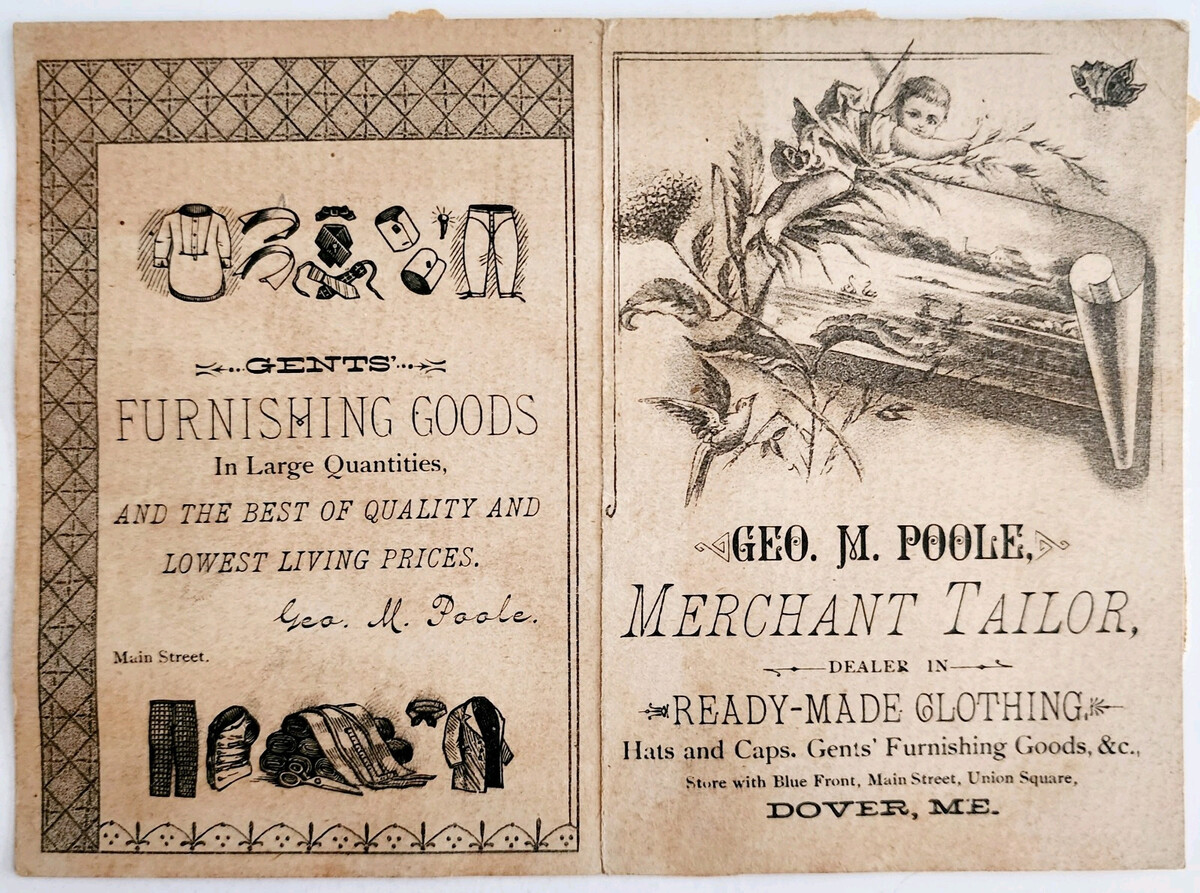- C1870s George Poole Merchant Tailor Victorian Trade Card Dover Maine Fabric E98C