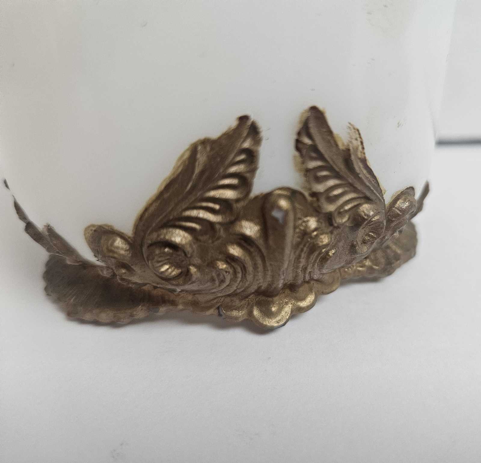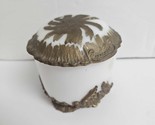C1900 Antique Victorian Vanity Milk Glass Powder Jar Trinket Box Handpainted Gol