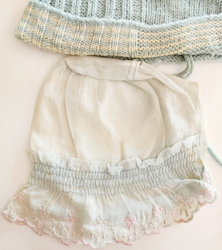 - C1940s-60s Baby Hat And Bonnet Handmade MCM Baby Blue Antique Clothing E84