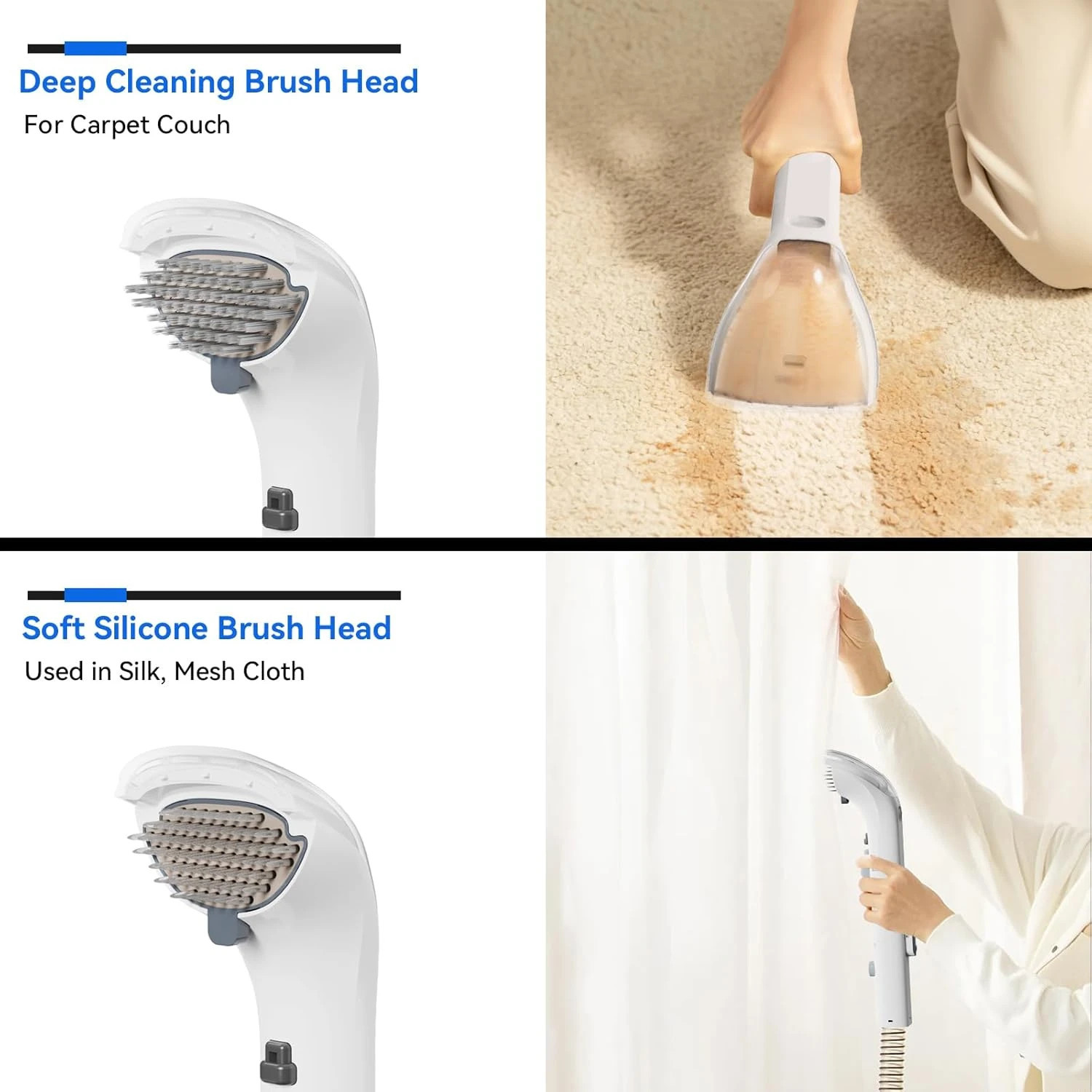? ?-??-? ????? ????? ??? ????????? ????????:Includes a stiff silicone brush for powerful stain removal on carpets and a soft bristle brush for gentle cleaning on delicate fabrics like car seats and sofas. The ultimate handheld spot cleaner tool.