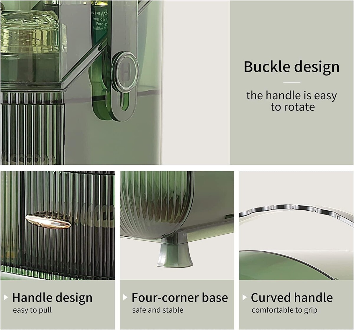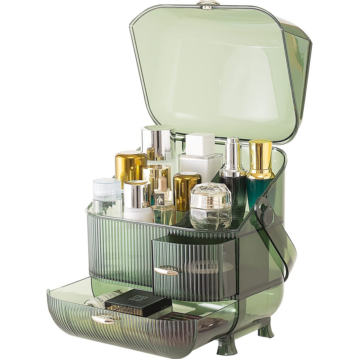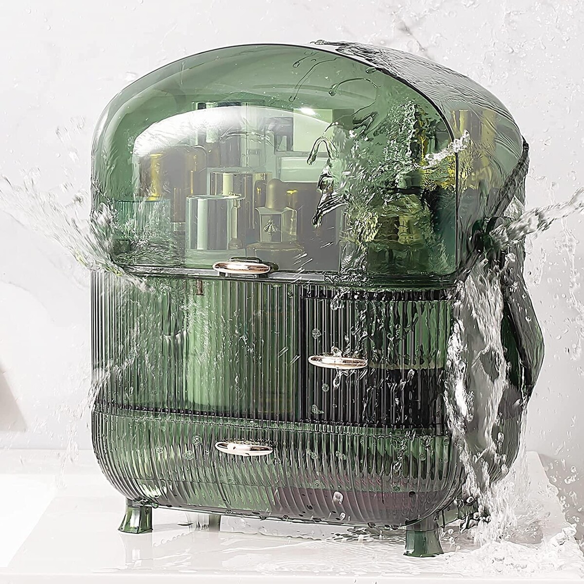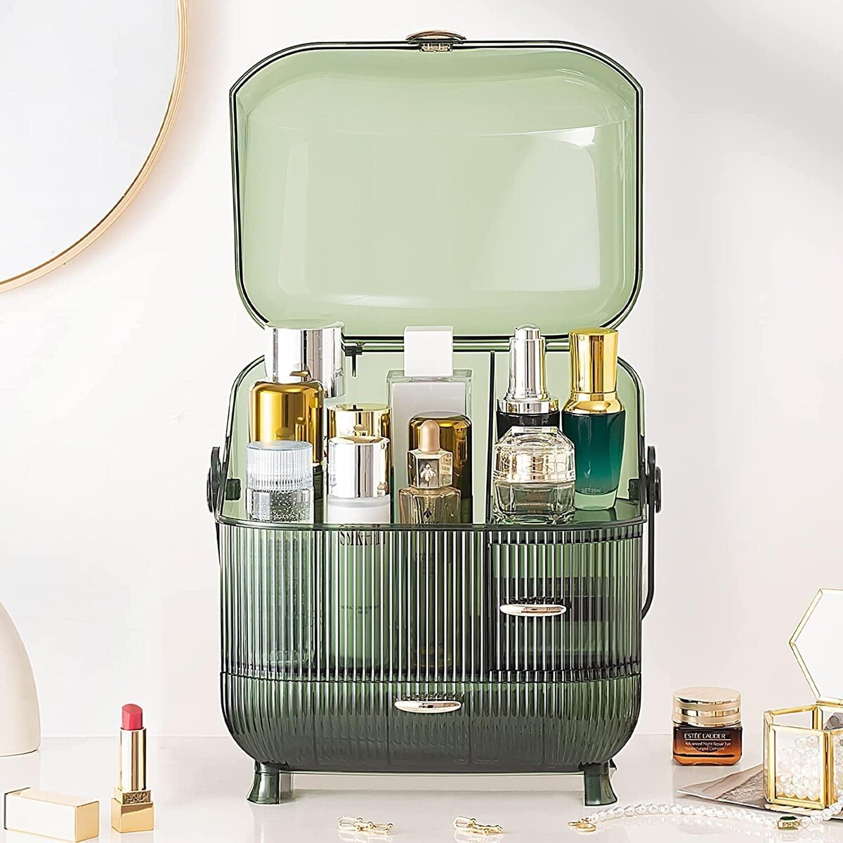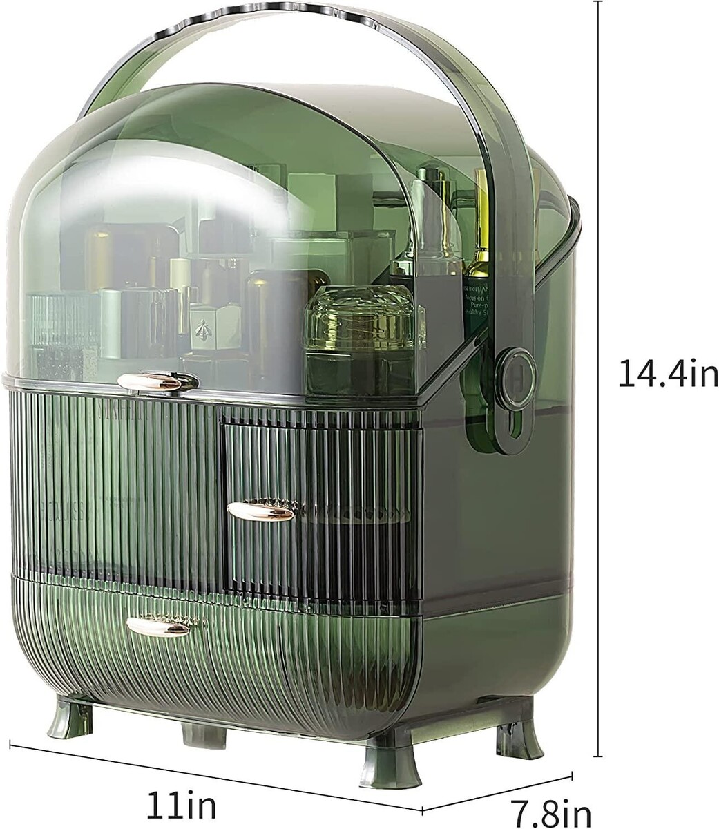 Practical : This dustproof cosmetic organizer is elegant to effortlessly meet any room decor, you could place it in your bedroom, bathroom, dressing room, bedside table, vanity countertop.There are three retro colors to choose from, retro green, retro yellow and retro gray.