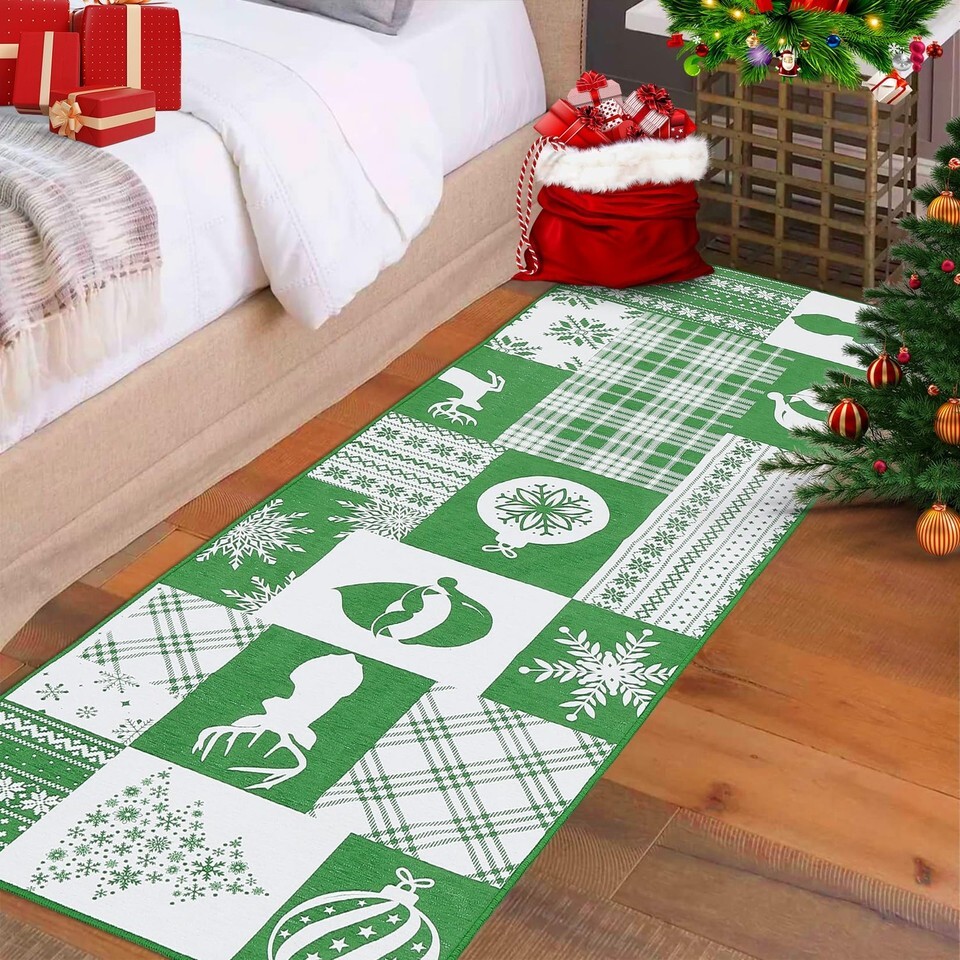 PERFECT DECOR - Our stylish Christmas area rug, is perfect for Christmas home decor, put it in front of your favorite sofa, bedside, or on the entryway floor as a welcoming mat. As a indoor door mat, living room rug, bedroom rug, fireplace rug, children play mat, dining room rug, sitting room decor, hallway runner rugs, kitchen mats, and etc. Also great Christmas gift for your friends and families.