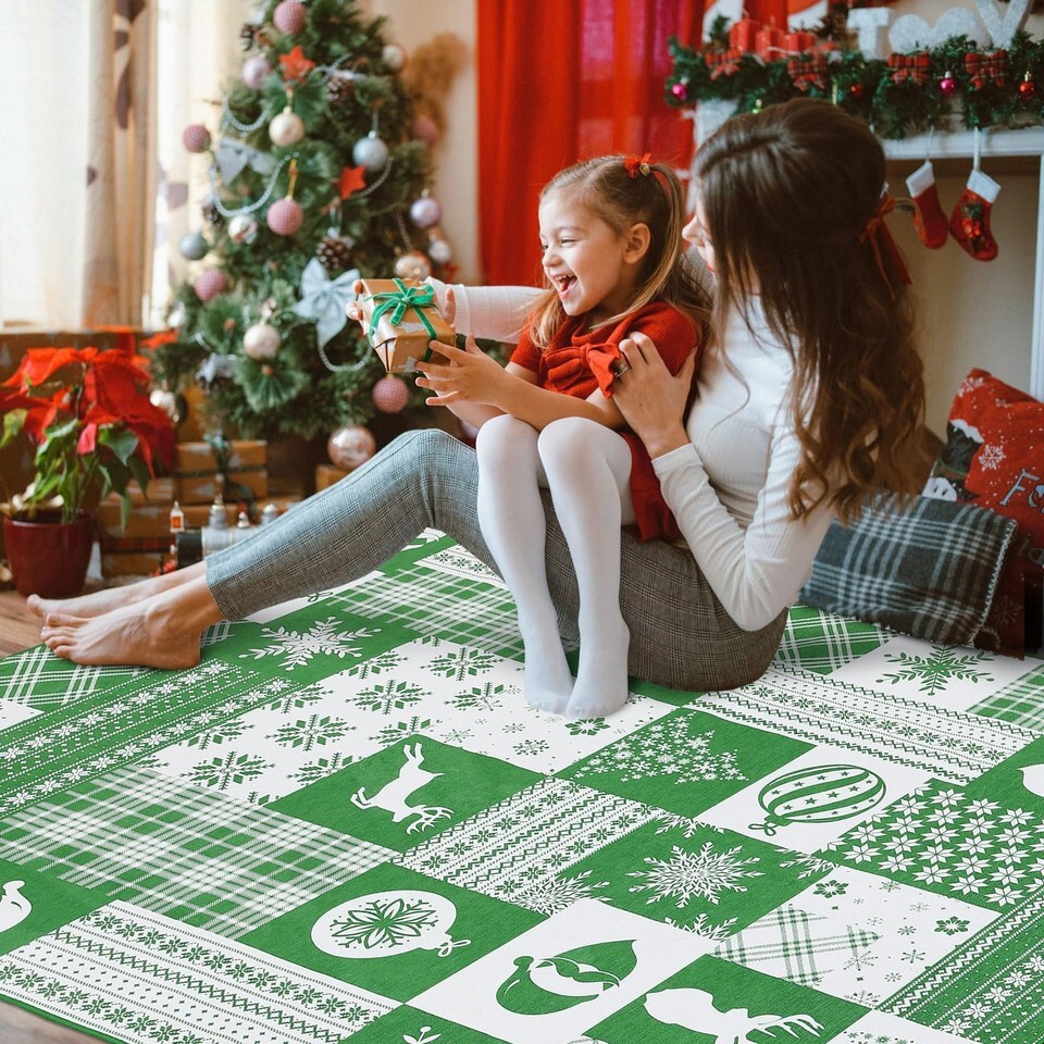NON-SLIP - Non-Slip TPR backing makes the bottom stable on the floor and safe enough for high traffic areas in your home, especially for kids or babies. Not only enhances the friction between the carpet and the floor, but also durable and easy to clean, let our Christmas rug bring you comfort and blessing. Our comfy floor carpet is the ideal rug for baby crawling, nursery, kid's room, office, living room, playroom, bedroom, bedside, etc.