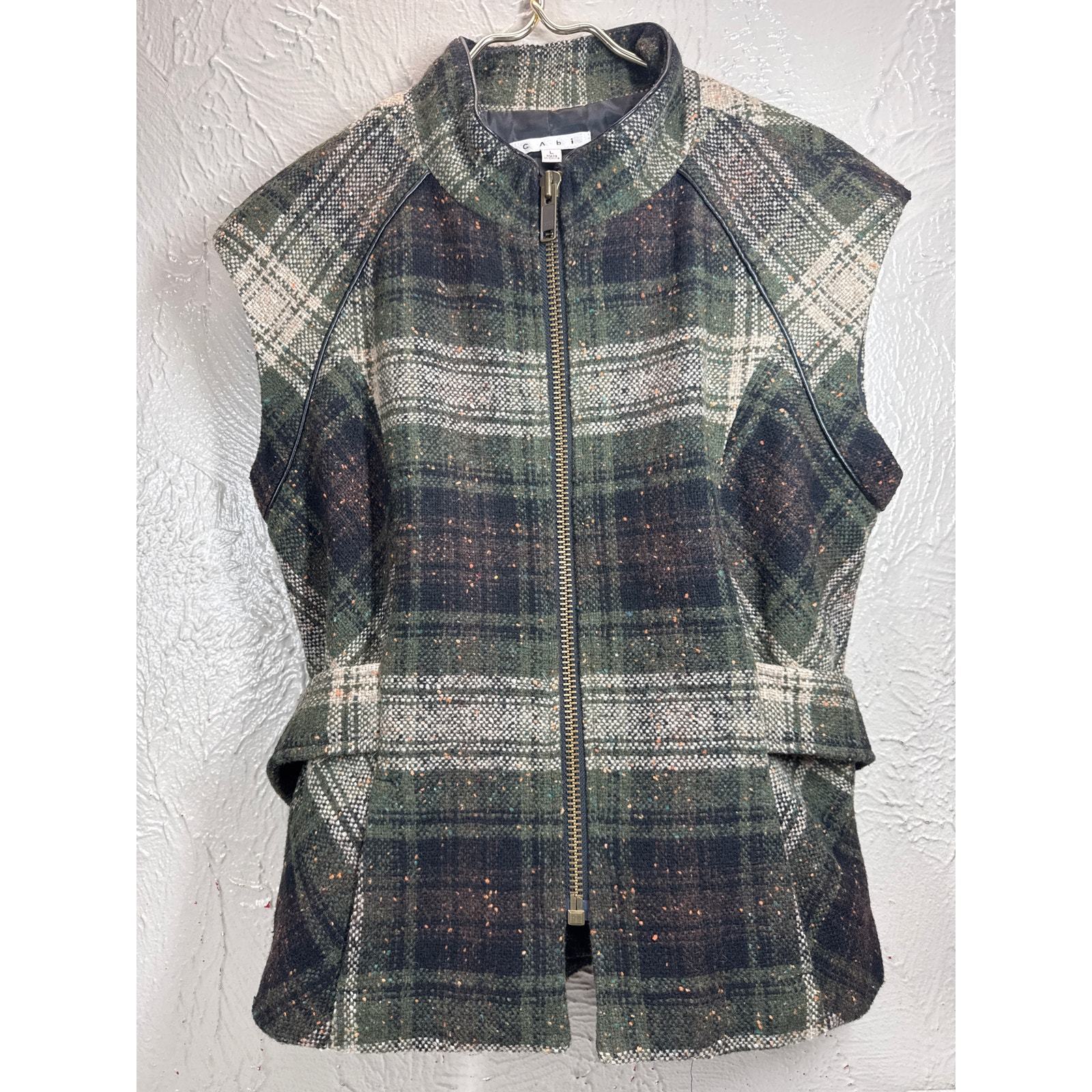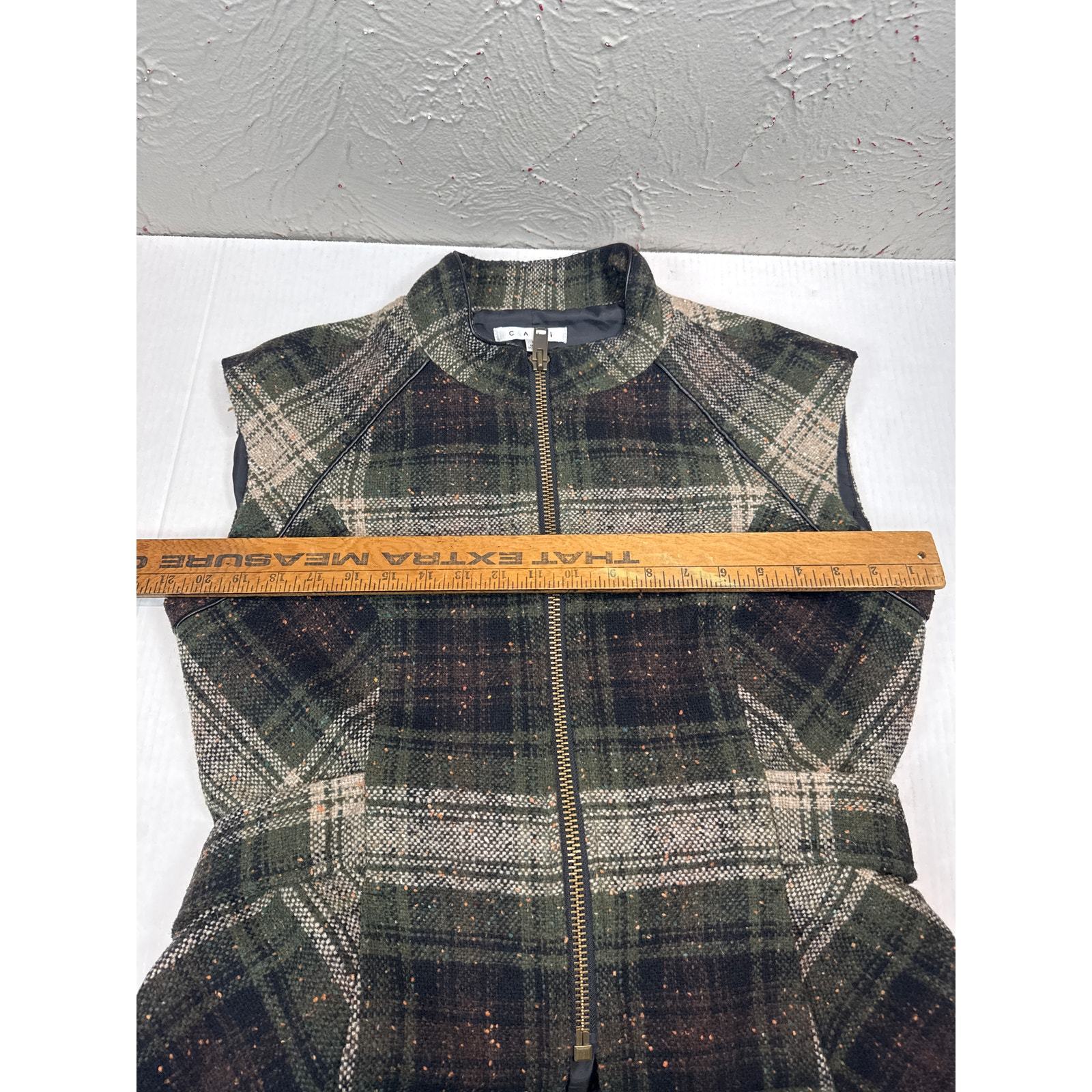 - CAbi Womens Style 611 All Tied Up Vest Plaid Wool Blend Tweed Zip Front Sz Large