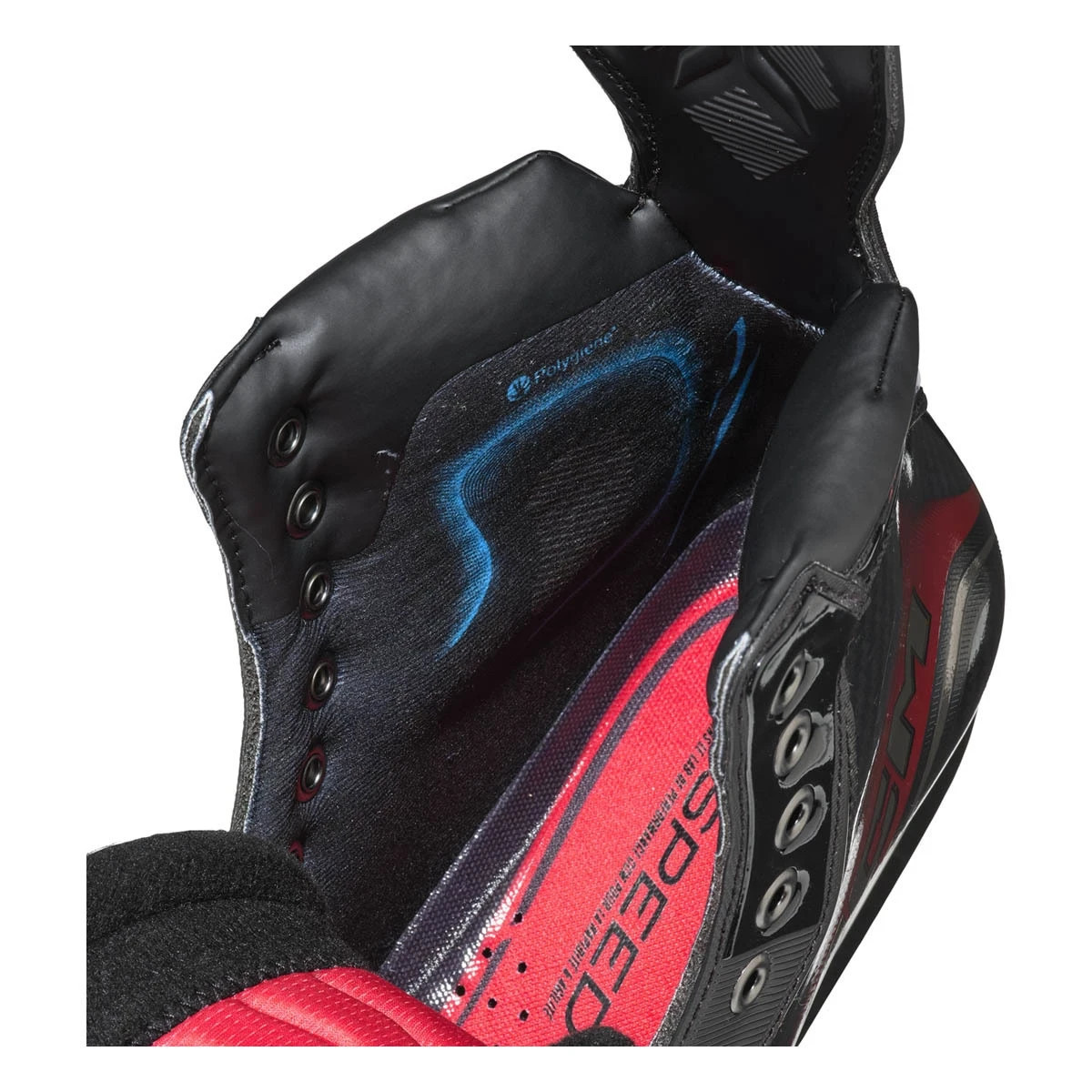 One-piece boot Speed with Game Ready Fit - Achieve ultimate speed and agility with CCM?s One-Piece boot construction. With an increased pitch angle for a more aggressive stance, get the quick shifting ability that will leave the opponents bewildered.