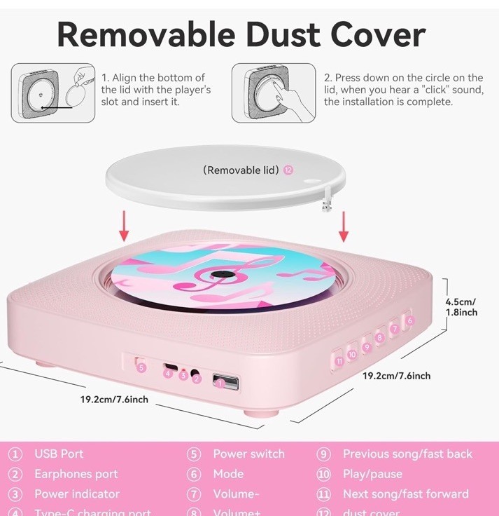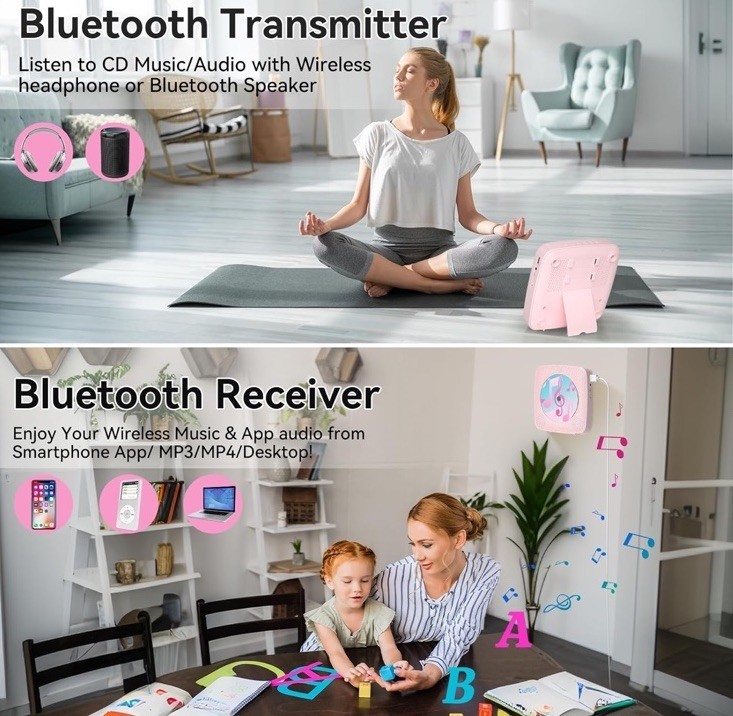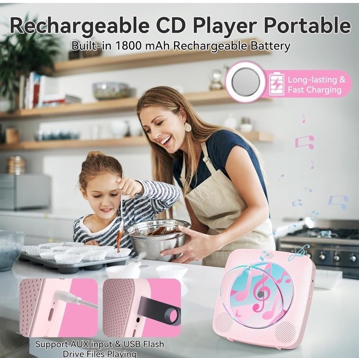 - CD Player Portable Bluetooth Rechargeable: CD Players for Home 1800mAh Desktop