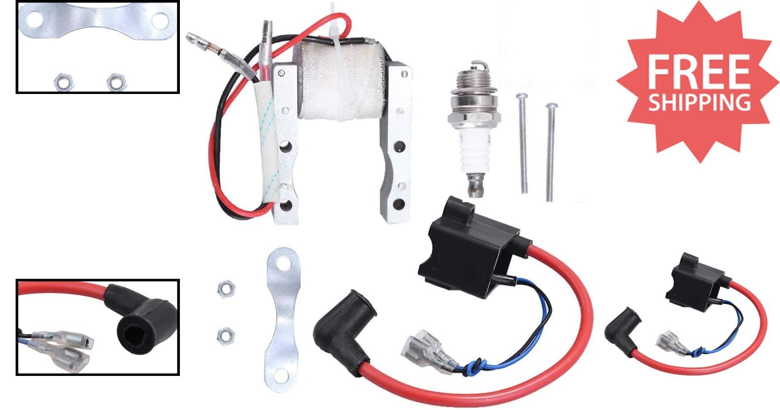 Upgrade your 50cc-80cc 2-Stroke Engine Motorized Bicycle with our precise replacement parts. Compatible with a variety of brands and models of Mopeds, ATVs, Bicycles, and Scooters, this kit ensures easy installation and seamless performance. Included in the package are a magneto coil, a CDI ignition coil with mounting hardware, and a spark plug ? everything you need to get your ride back in top condition. For detailed visuals and additional information, please refer to the images above.