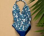 - CHAPS Size 14 Blue White Paisley Ruched Halter Swim Bathing Swim Suit one piece