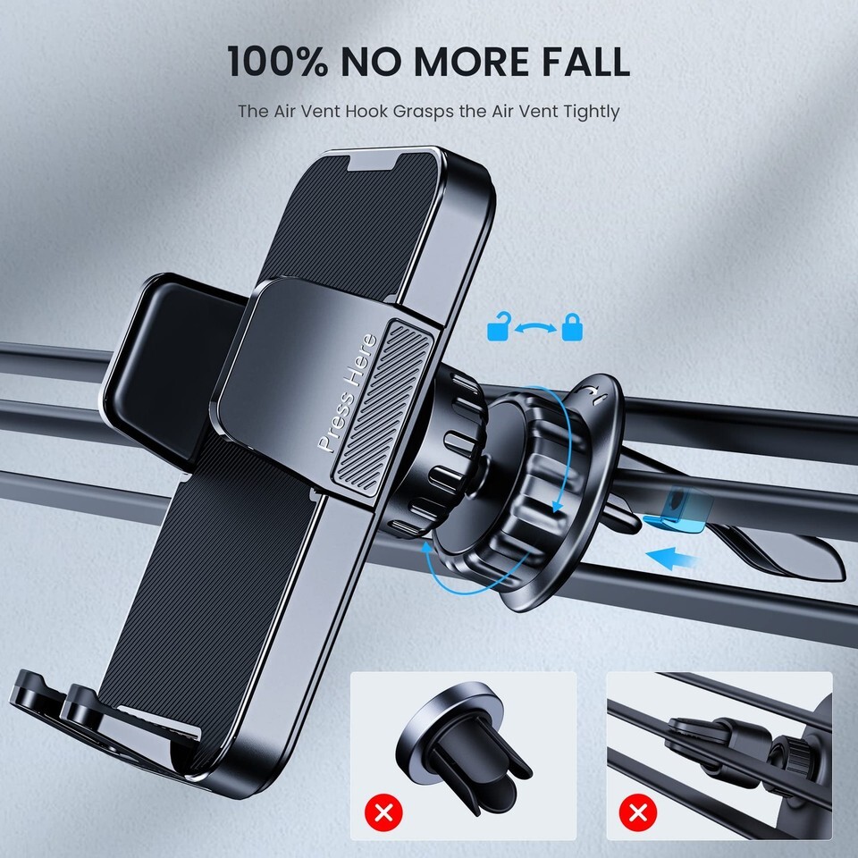 Universal Compatibility: Phone stand for car adopts a one-button release system. Quickly release your phone mount with one hand. Completely free your hands and enjoy your safe driving. The adjustable clip arm is perfect for 4.0-7.1 inch phones.