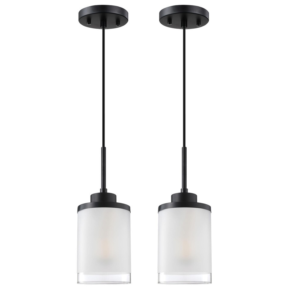 2 Pack Modern Farmhouse Hanging Kitchen Island 4.3 Inch Clear Frosted Glass Shade Pendant Light Fixture,Black Finish for Kitchen Island Dining Room Bedside