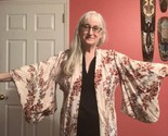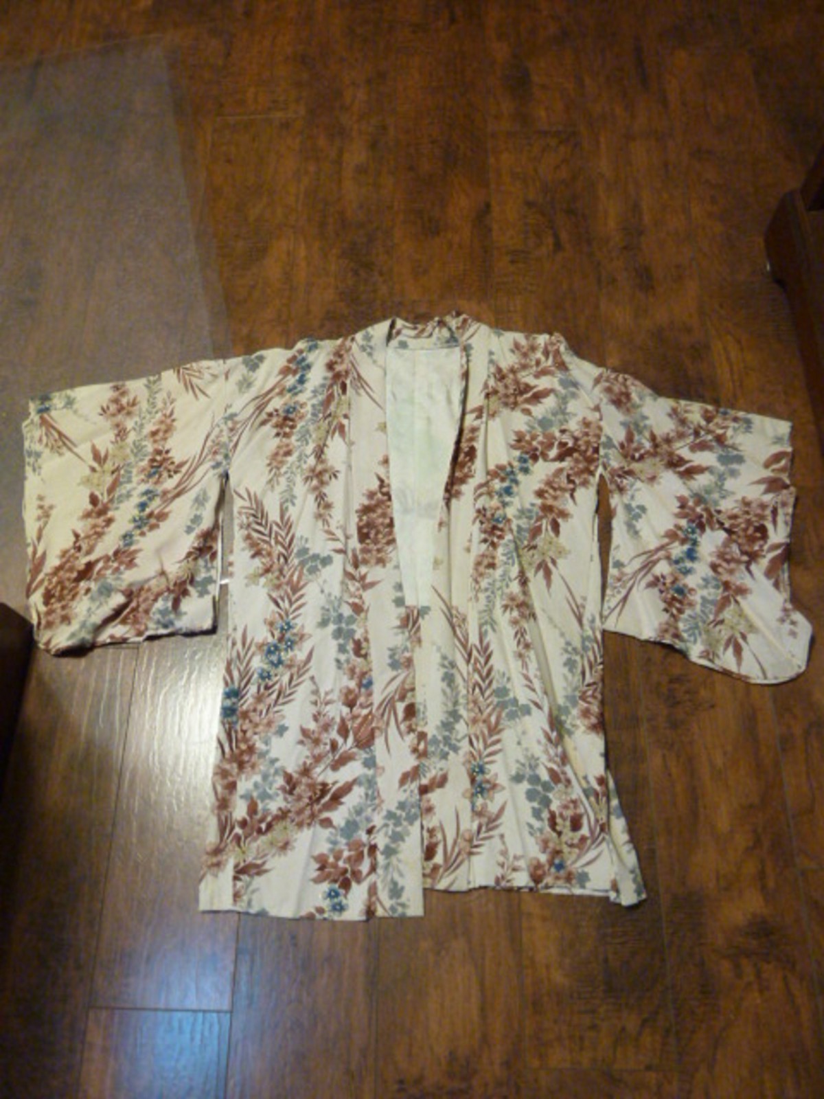 CL-KIM-13 Pre WWII vintage short pale yellow brown gold floral design Kimono Med