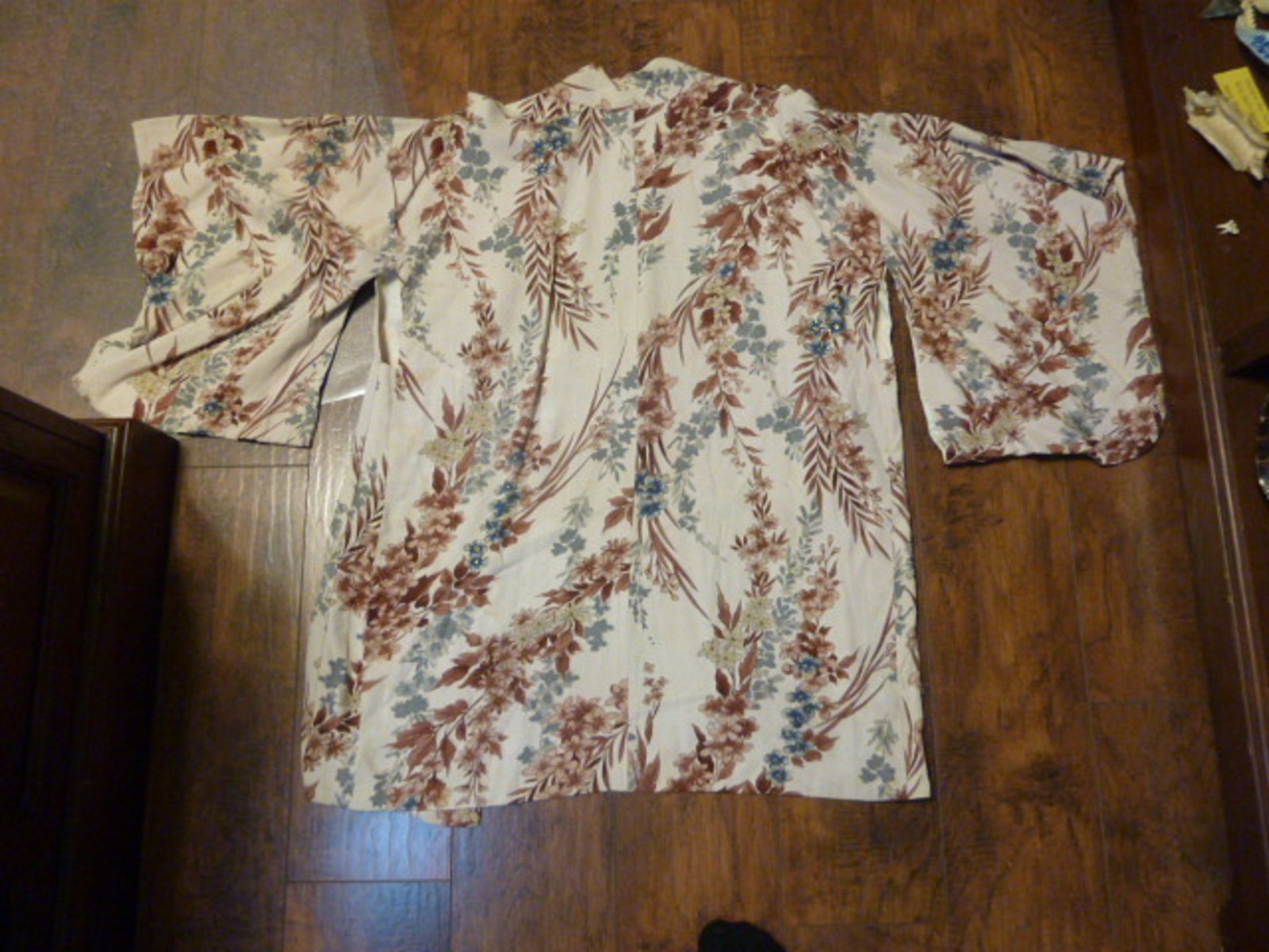 - CL-KIM-13 Pre WWII vintage short pale yellow brown gold floral design Kimono Med