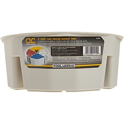 From the Manufacturer The 1154, 4¿ High Full Round Bucket Tray from Custom LeatherCraft is made of durable lightweight plastic. With our unique ¿pop-up¿ carrying hand you can stack or nest trays inside a standard 3oe or 5 gallon bucket.