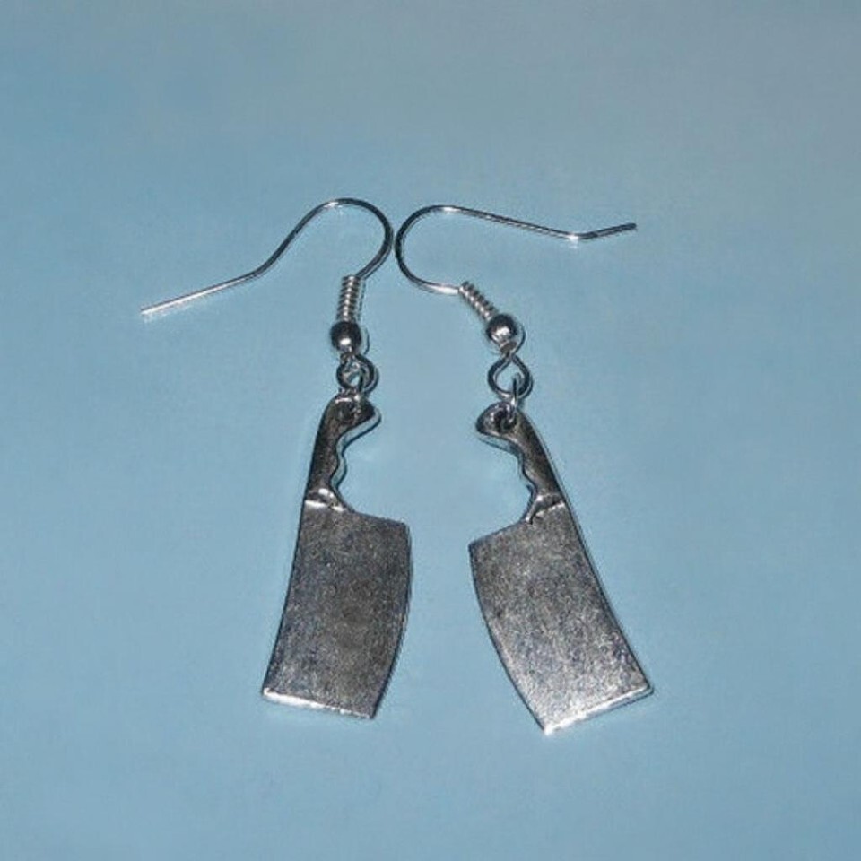 - CLEAVER EARRINGS 1.7" Kitchen Meat Knife Chopped Chef Punk Rock Halloween Horror