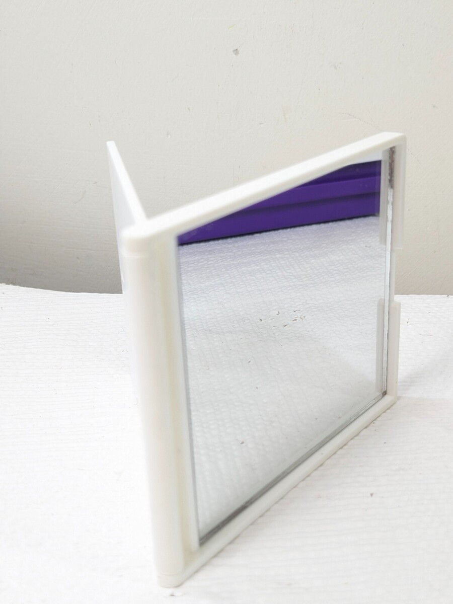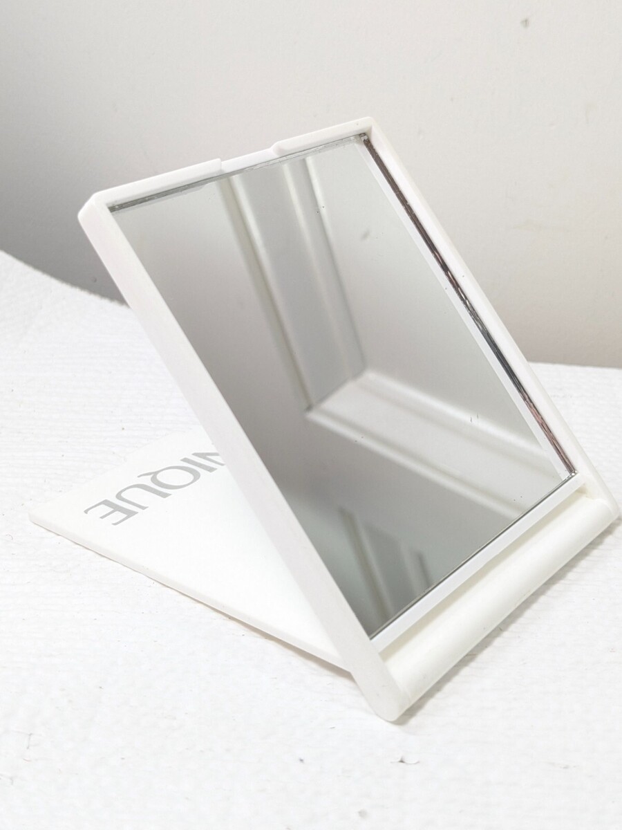 - CLINIQUE Travel Compact Makeup Mirror White Flip to stand Up purse size Vintage