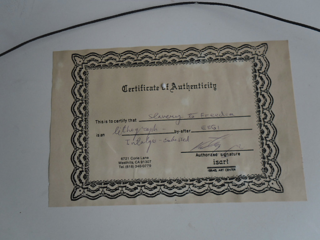 - COA Signed Amram Ebgi Title: "Slavery To Freedom" 359/950 II Colored Lithograph,