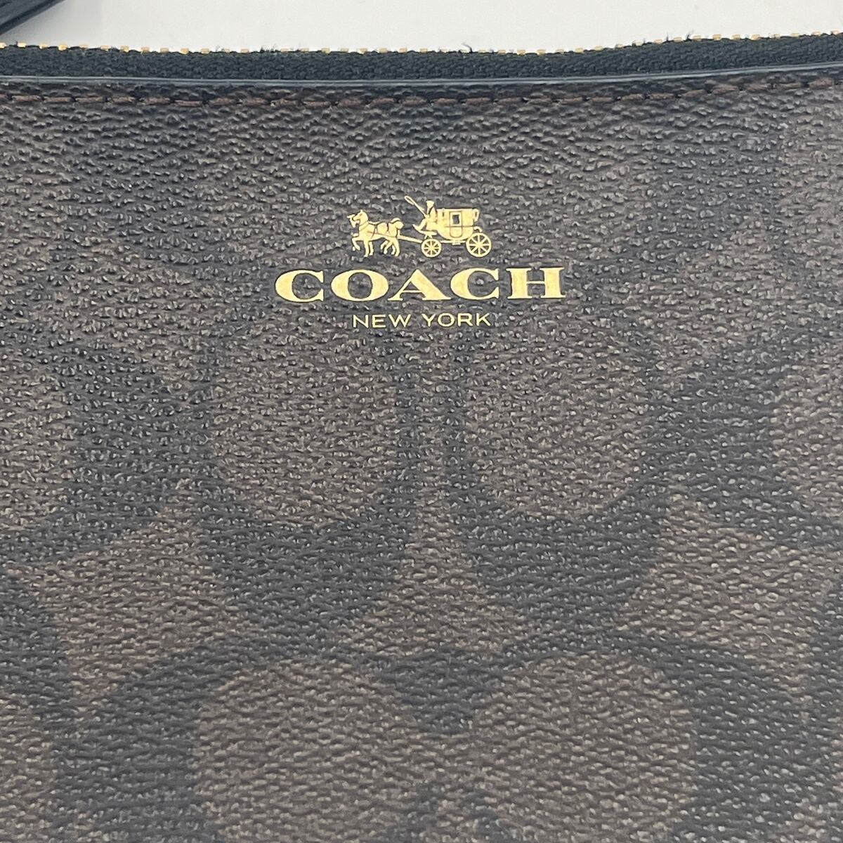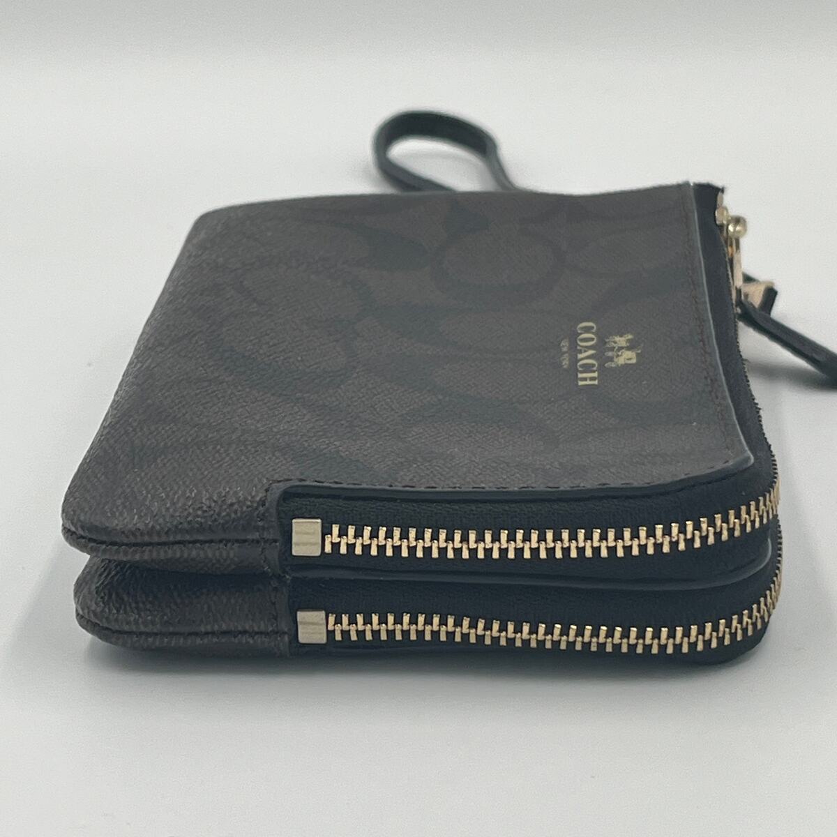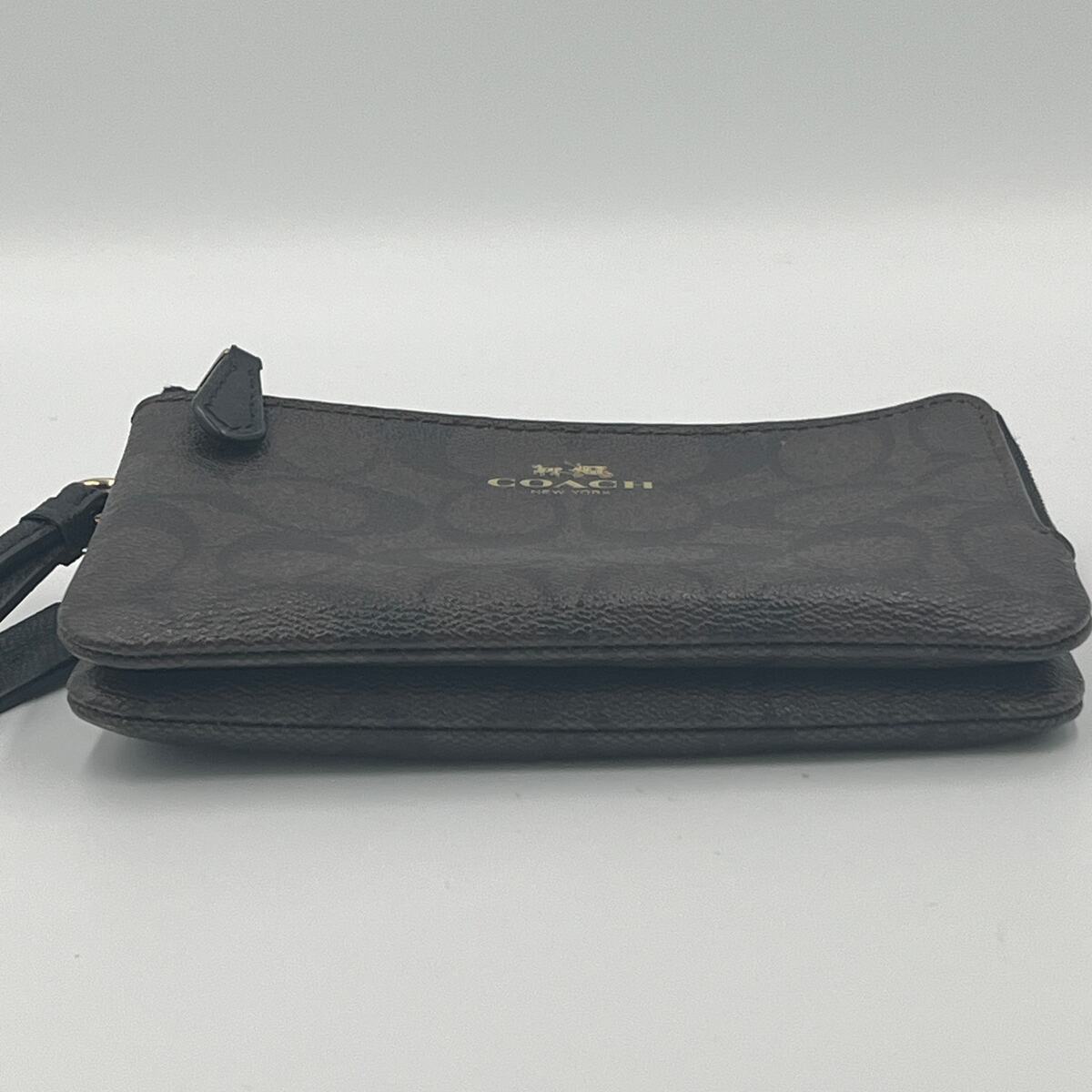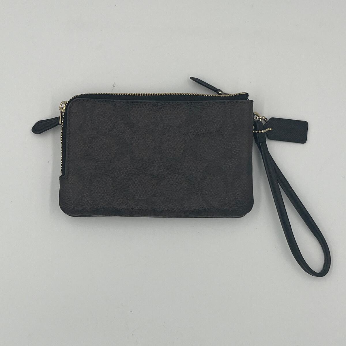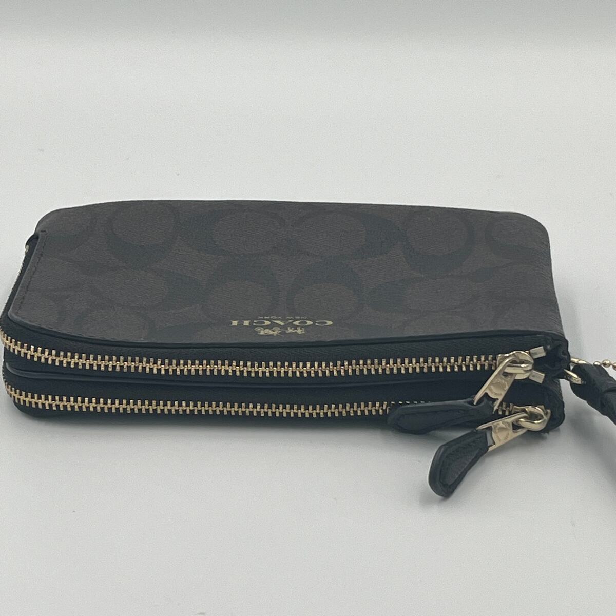 - COACH Signature Brown Black Wristlet Wallet PVC Double Corner Zip F87591