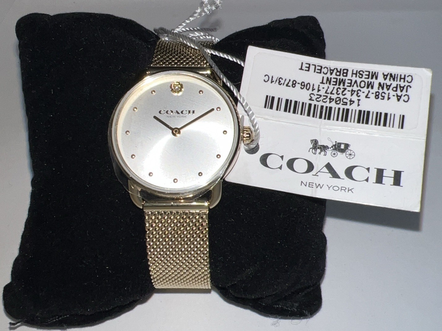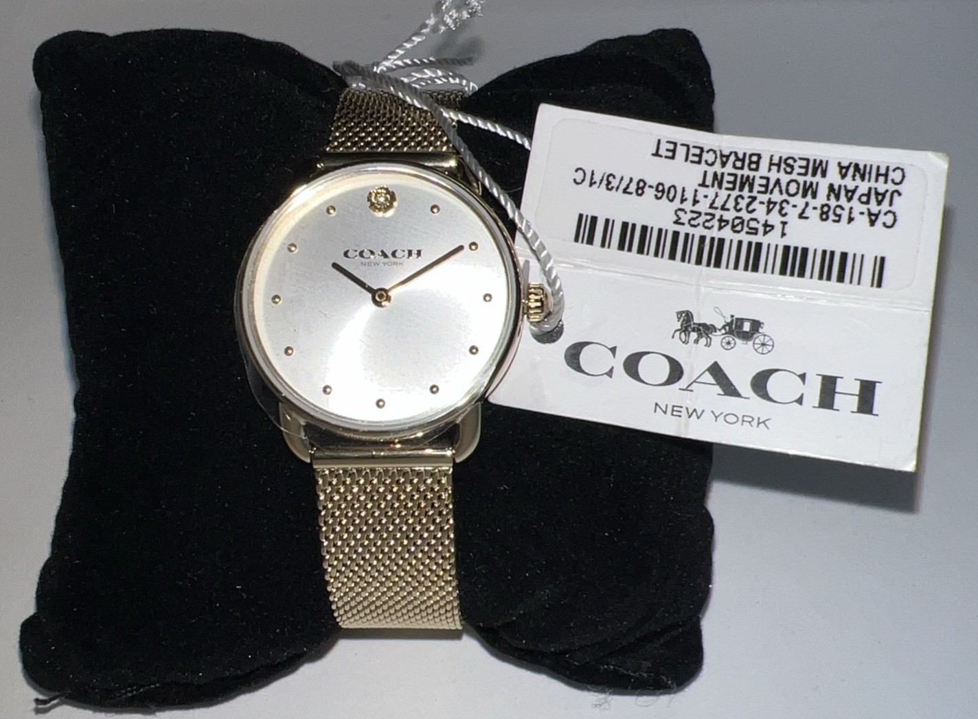 - COACH Woman’s Elliot Gold-Tone Stainless Steel Mesh Bracelet Watch NewAuthentic