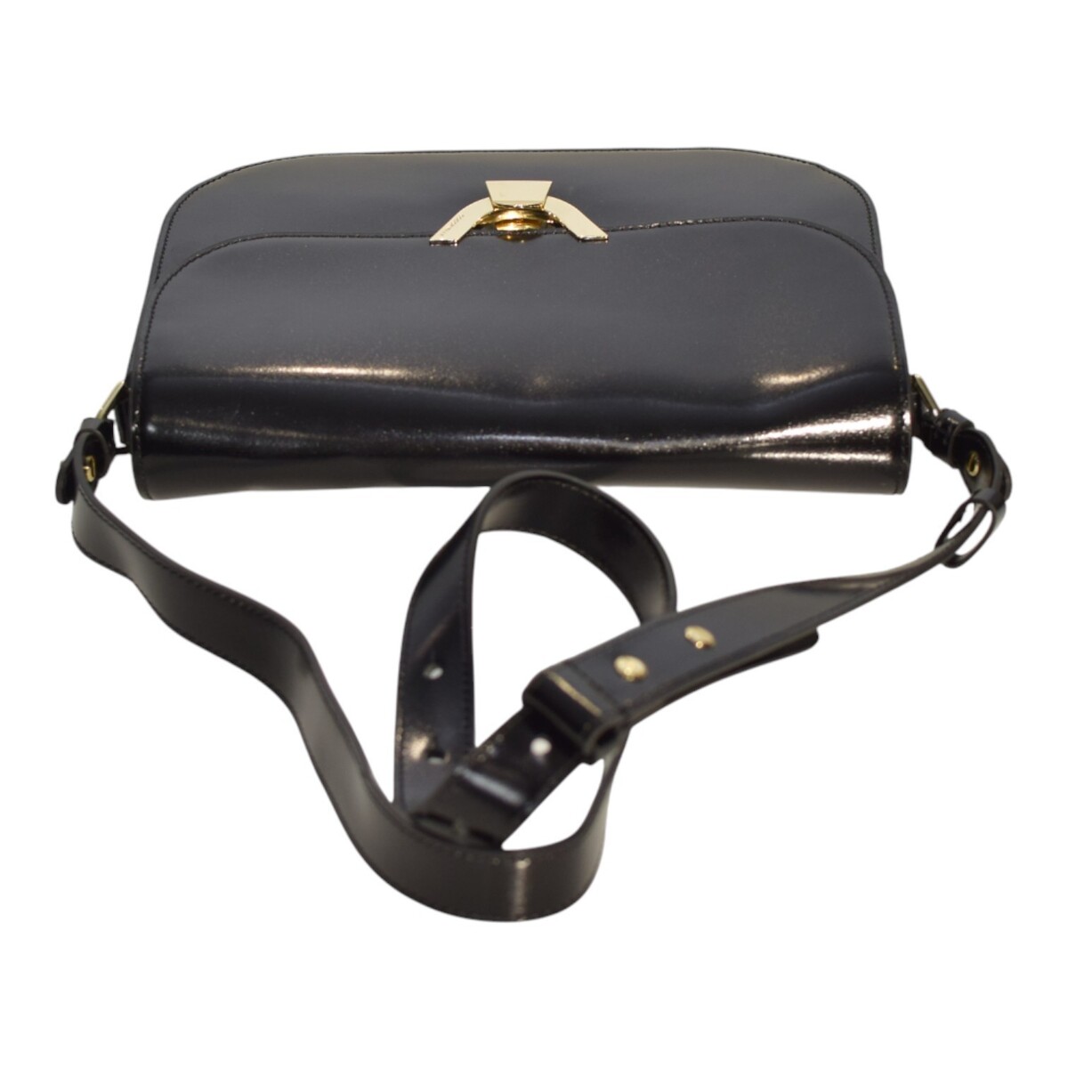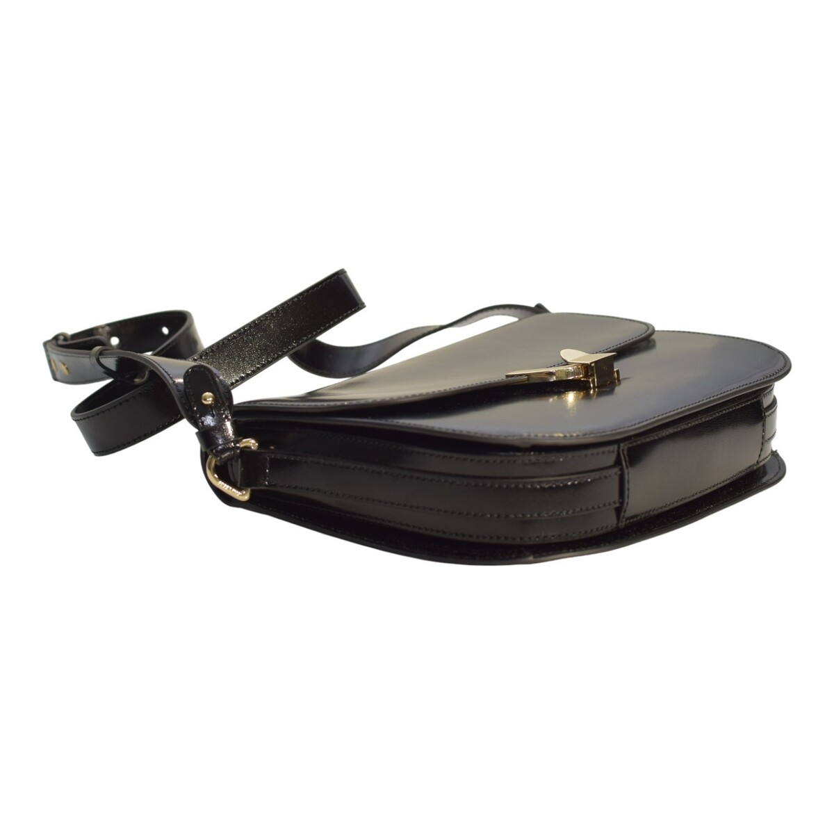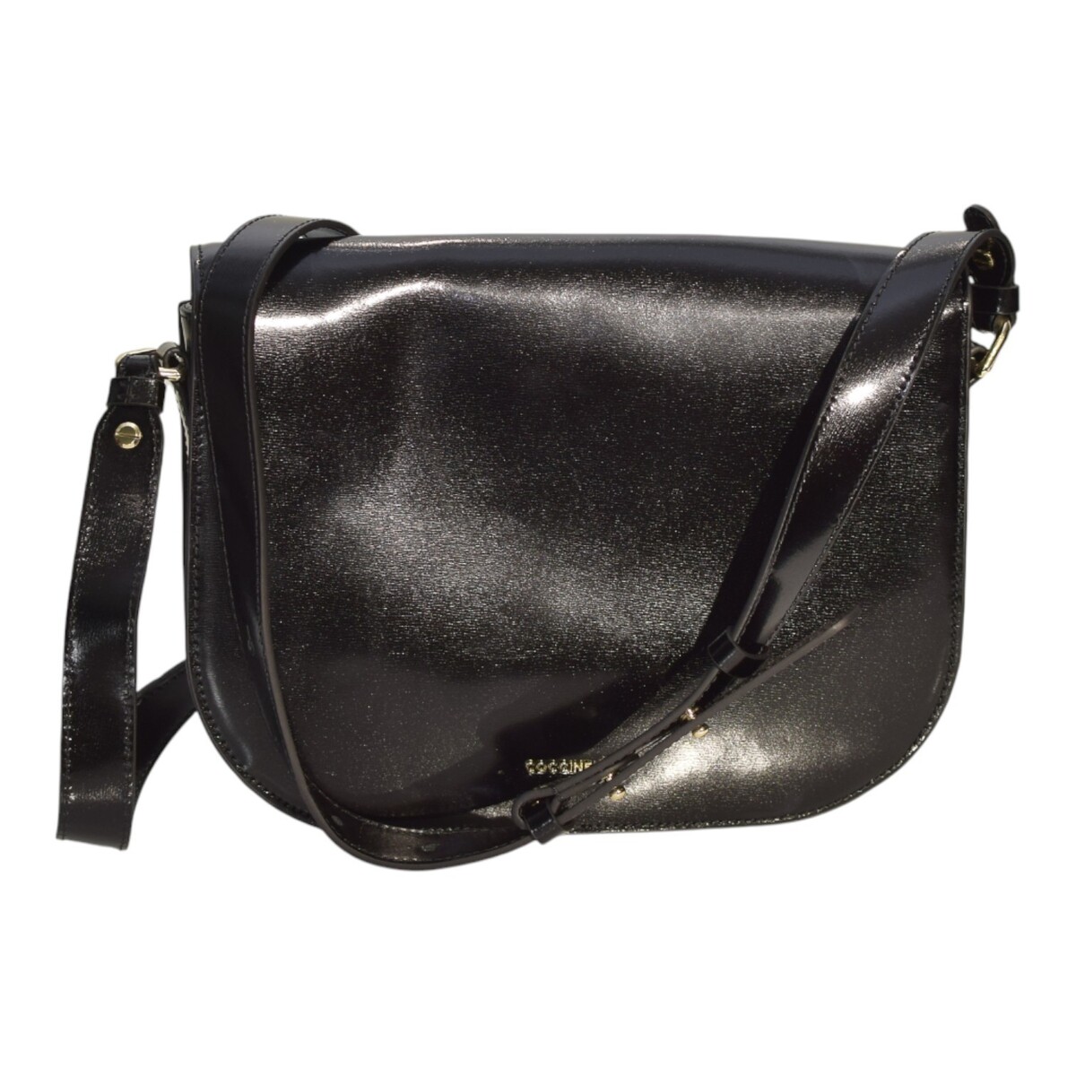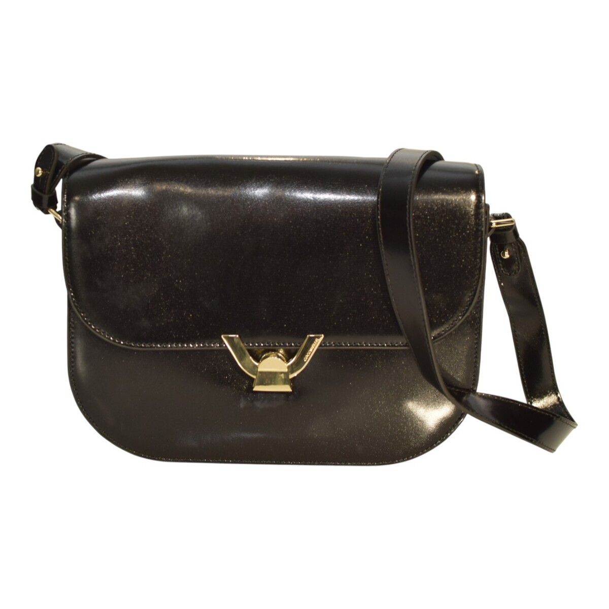 - COCCINELLE Black Shinny Leather Shoulder Crossbody Bag – Gold Hardware – Italian