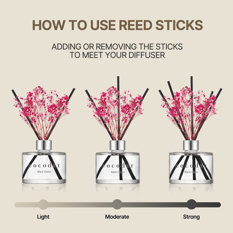 Easy Scent Control And Long-Lasting Fragrance - You can choose to add or remove the number of reed sticks to match your taste. It takes 1 or 2 days for the fabric sticks to soak in the scent. When the fragrance weakens, simply turn the reed sticks upside down or replace them with new ones.