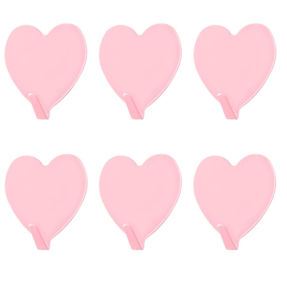 6 Pack Heart Shaped Adhesive Hooks Decorative Hanging Wall Hook Stainless Steel Sticky Hangers Cute Heavy Duty Hooks without Nails for Keys Towel Home Kitchen Bathroom Office Classroom