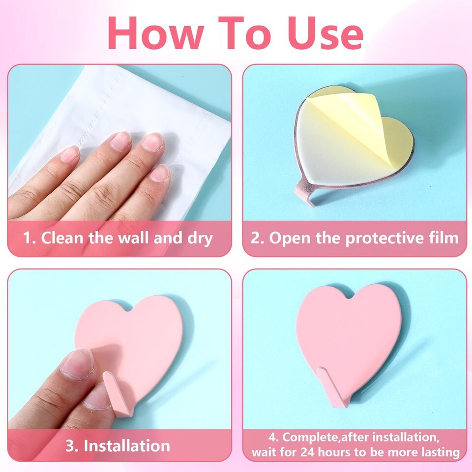 Quality and DurableThese heart-shaped adhesive hooks are crafted from quality stainless steel material, not only durable but also have good carrying capacity, and the sturdy adhesive ensures long-lasting performance.