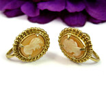 - CORO Carved Shell CAMEO Earrings Vintage Screw Back Oval Goldtone Cream & Tan