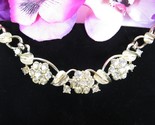 - CORO Vintage NECKLACE Rhinestone Flower Blooms Leaves Goldtone Choker 16"