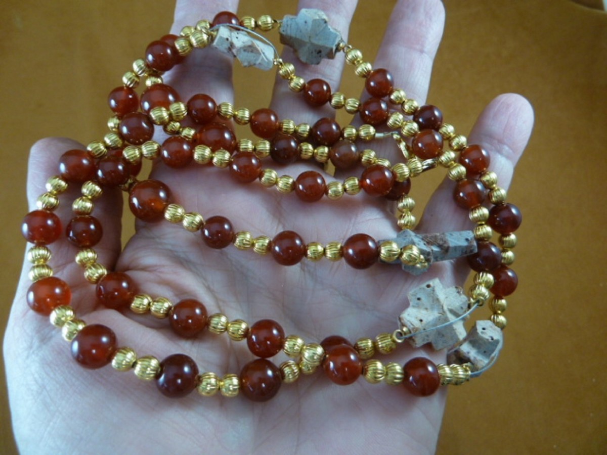 - CR510-8 Fairy Stone CHRISTIAN 5 CROSS Lucky Crystal 38" Carnelian necklace