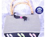 - CROFT & BARROWS Checkered Bamboo Handle Statement Purse W Embroidered Flipflops