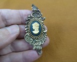 CT2-38 LADY woman blue white CAMEO brass scrolled Pin Pendant Jewelry brooch