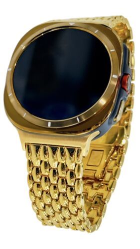 - CUSTOM GOLD Samsung Galaxy Watch Ultra Black 47mm 24k Gold Plated Links Band