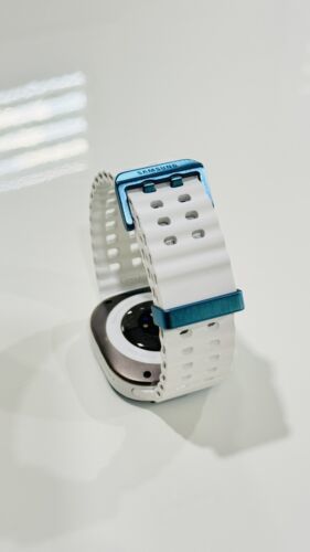Original Samsung Galaxy Watch ULTRA 2024 release titanium which has been customized by polishing and anodizing the top titanium watch to a Sky Blue color.