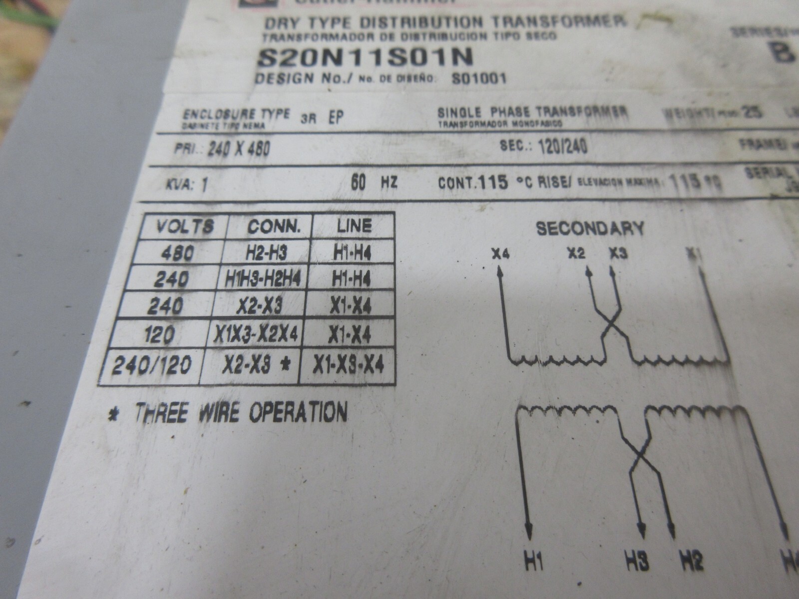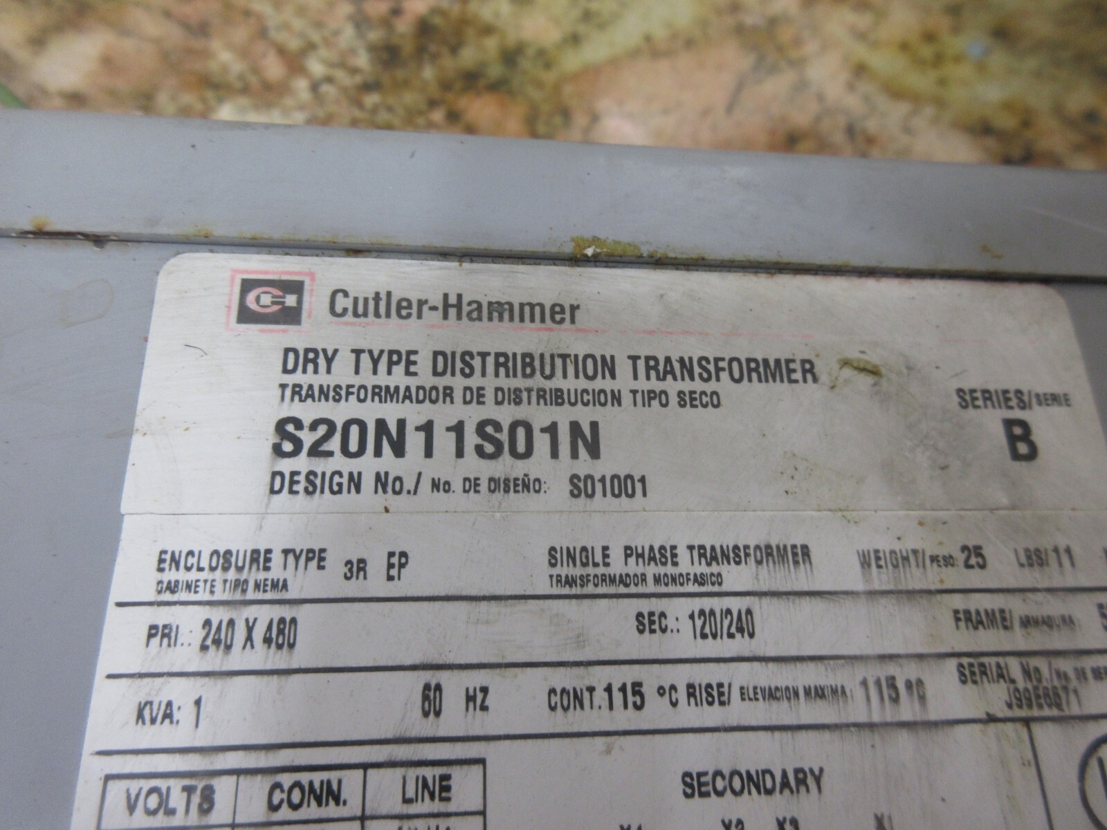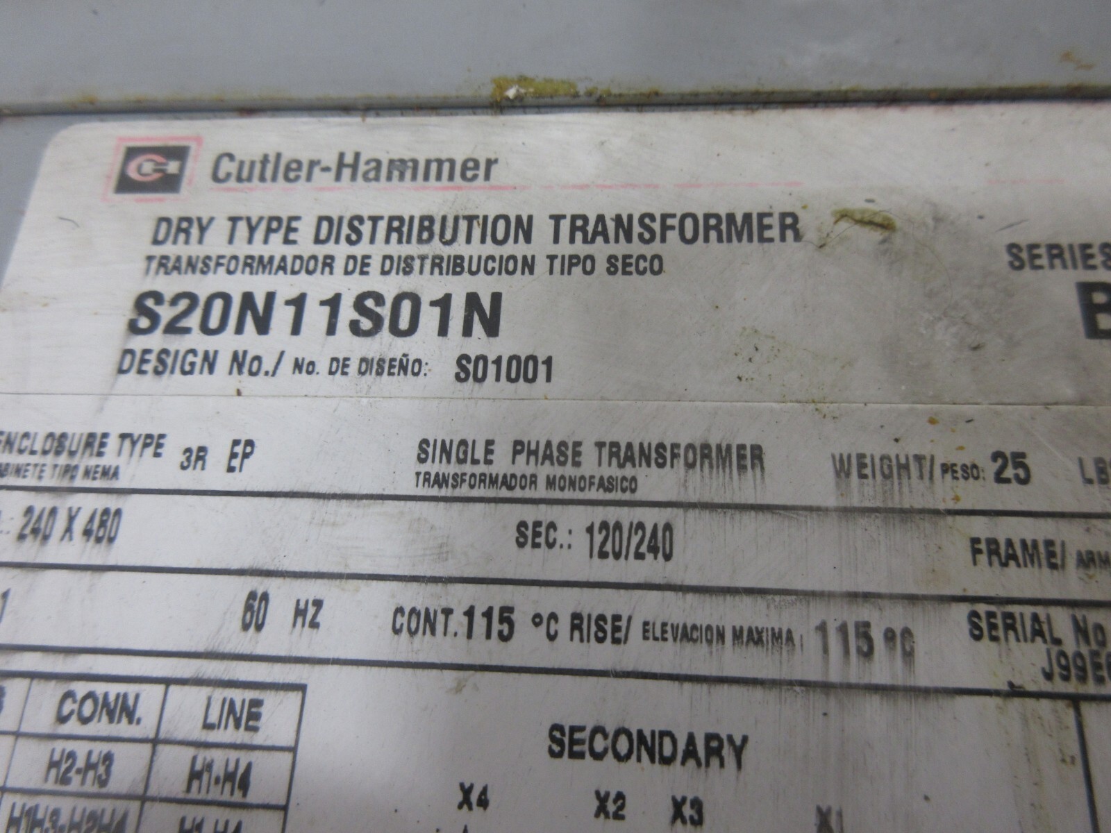 - CUTLER-HAMMER DRY TYPE DISTRIBUTION TRANSFORMER S20N11S01N S01001 SERIES B FSE