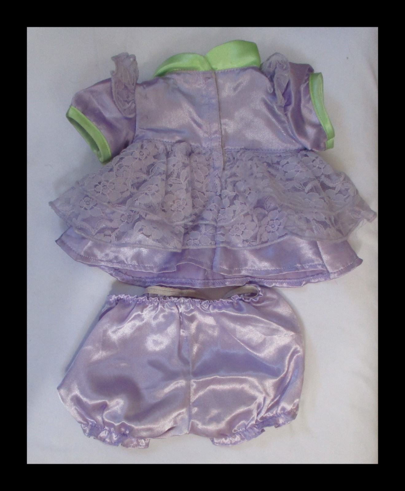 - Cabbage Patch kids Clothes Satiny Purple & Green Dress with Bloomers Vintage