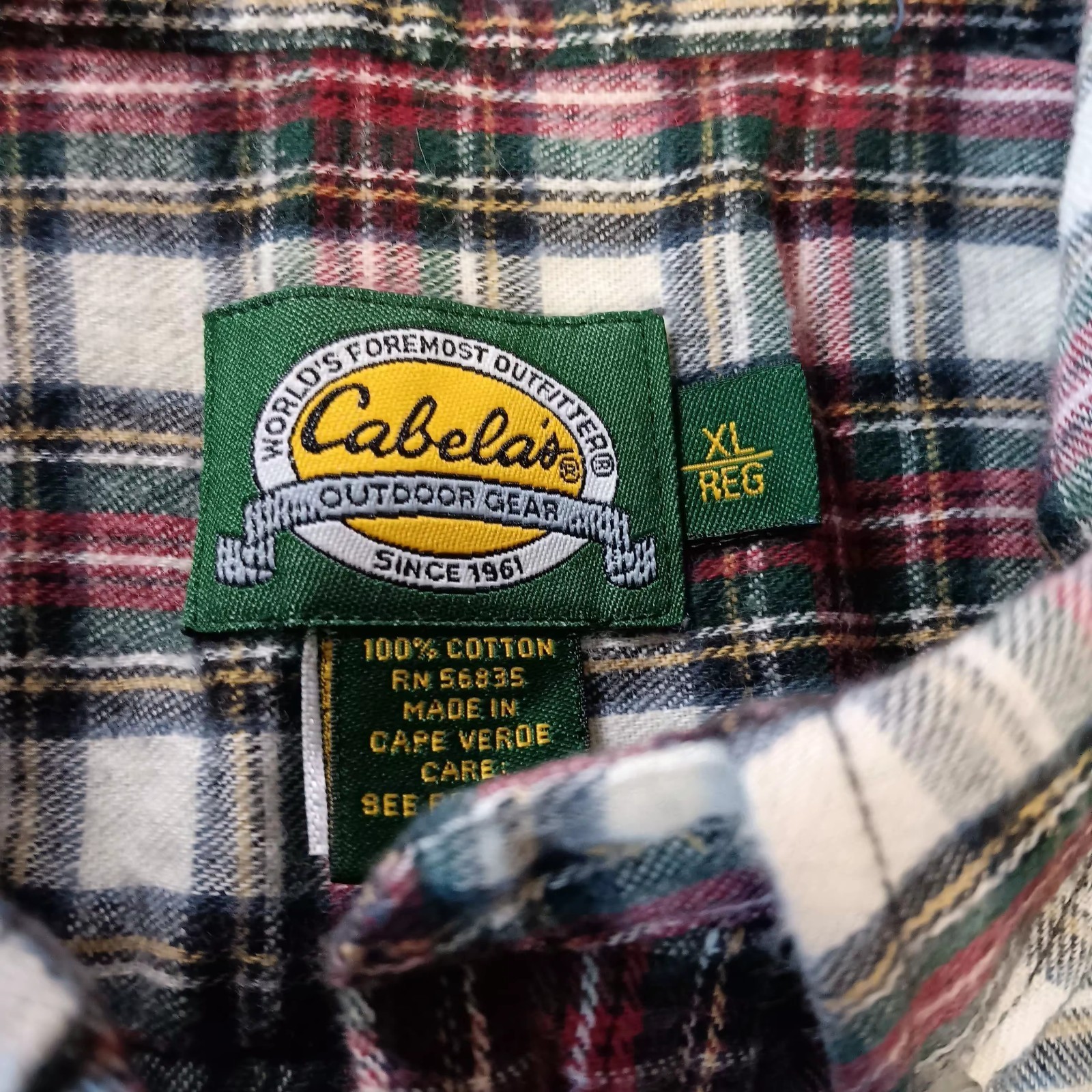 - Cabela's Shirt Mens XL Red White and Green Plaid Flannel Long Sleeve Button Down