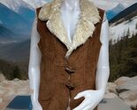- Cabelas Faux Shearling Vest Womens XL Natural Brown Open Gilet Faux Horn Toggles