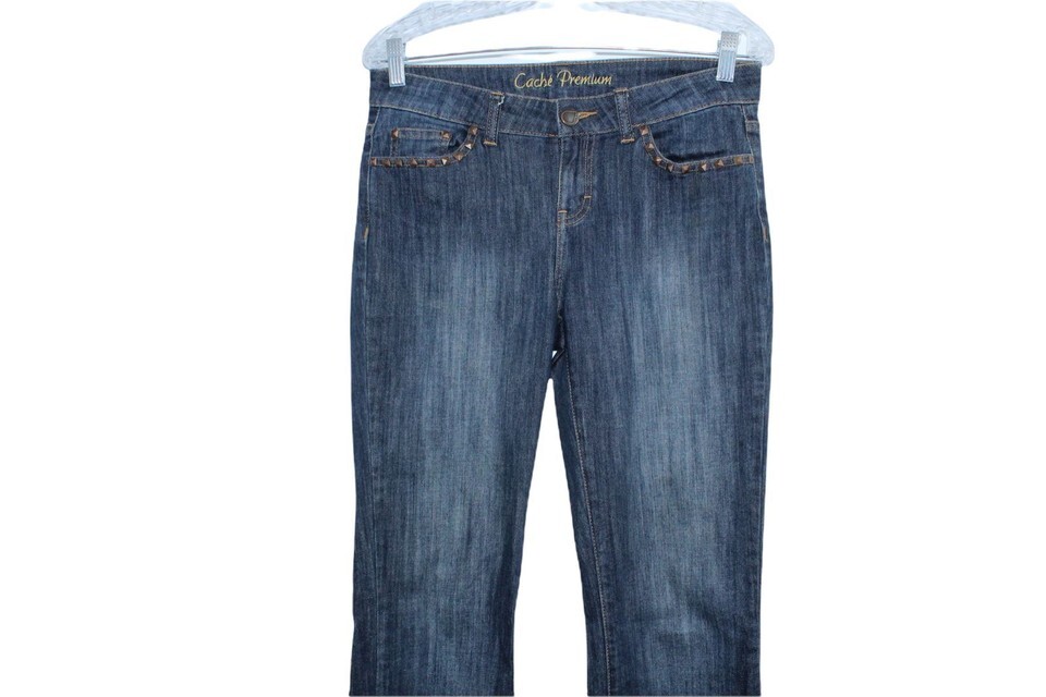- CACHE PREMIUM WOMENS SIZE 6 STUDDED POCKETS MID RISE BLUE JEANS