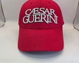 Caesar Guerini branded adjustable baseball cap in red with white embroidery. Features the Caesar Guerini logo on the front and ?Veni Vidi Vici? embroidered on the back. Made from 100% cotton with a hook-and-loop closure. Pre-owned in good condition with signs of interior wear.