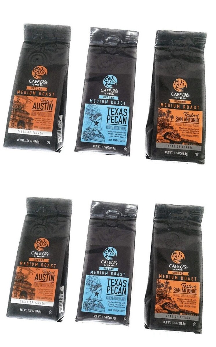 - Cafe Ole' Gourmet Coffee Sampler Texas Pecan San Antonio & Austin 6 Pack 1.75oz