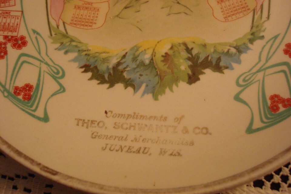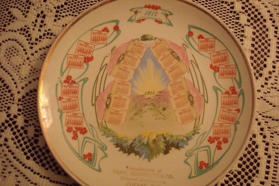 - Calendar Plate RARE 2 year Calendar 1911-1912, made for THEO SCHWARTZ CO JUNEAU