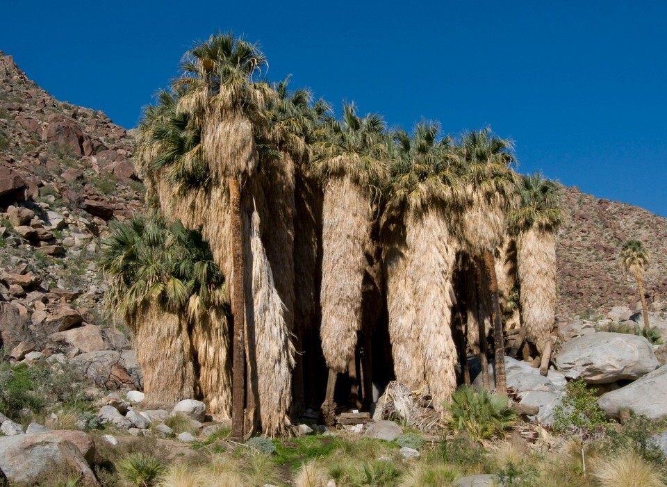 Washingtonia filifera, known as the California fan palm, is a stately and iconic palm species native to the arid regions of the southwestern United States, especially California, Arizona, and parts of northern Mexico. It is the only palm species native to the western U.S. and is commonly found in desert oases and canyons, where underground water sources allow it to thrive. The tree is notable for its tall, singular trunk that can grow up to 60?70 feet tall and is often covered in a thick thatch of dead leaves, forming a dense "skirt" unless trimmed. Its massive, fan-shaped fronds span up to 6 feet wide and are supported by long petioles lined with sharp, curved spines. Washingtonia filifera is well adapted to extreme conditions, tolerating intense heat, drought, and even occasional frost. It is frequently planted in landscapes across the southern U.S. and Mediterranean-like climates due to its majestic appearance and low maintenance requirements. In its native habitat, it serves an important ecological role, providing food and shelter for birds, mammals, and insects. Though often replaced in cultivation by the faster-growing Washingtonia robusta, the California fan palm is hardier and more resilient to cold and wind. It is a symbol of endurance in harsh desert environments and holds cultural significance for Indigenous peoples, who historically used its fronds, fibers, and fruit for practical purposes.