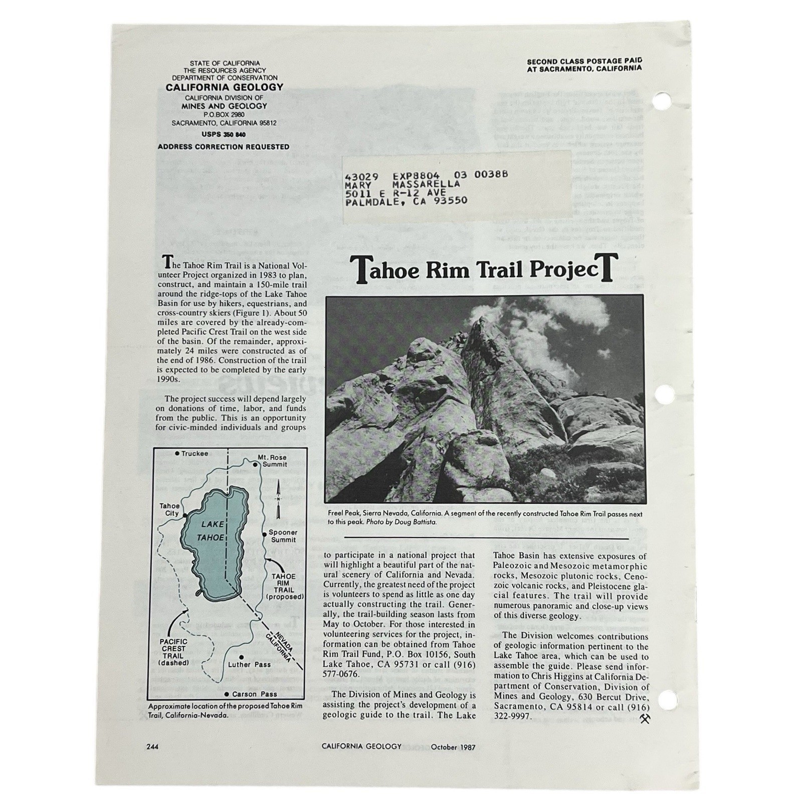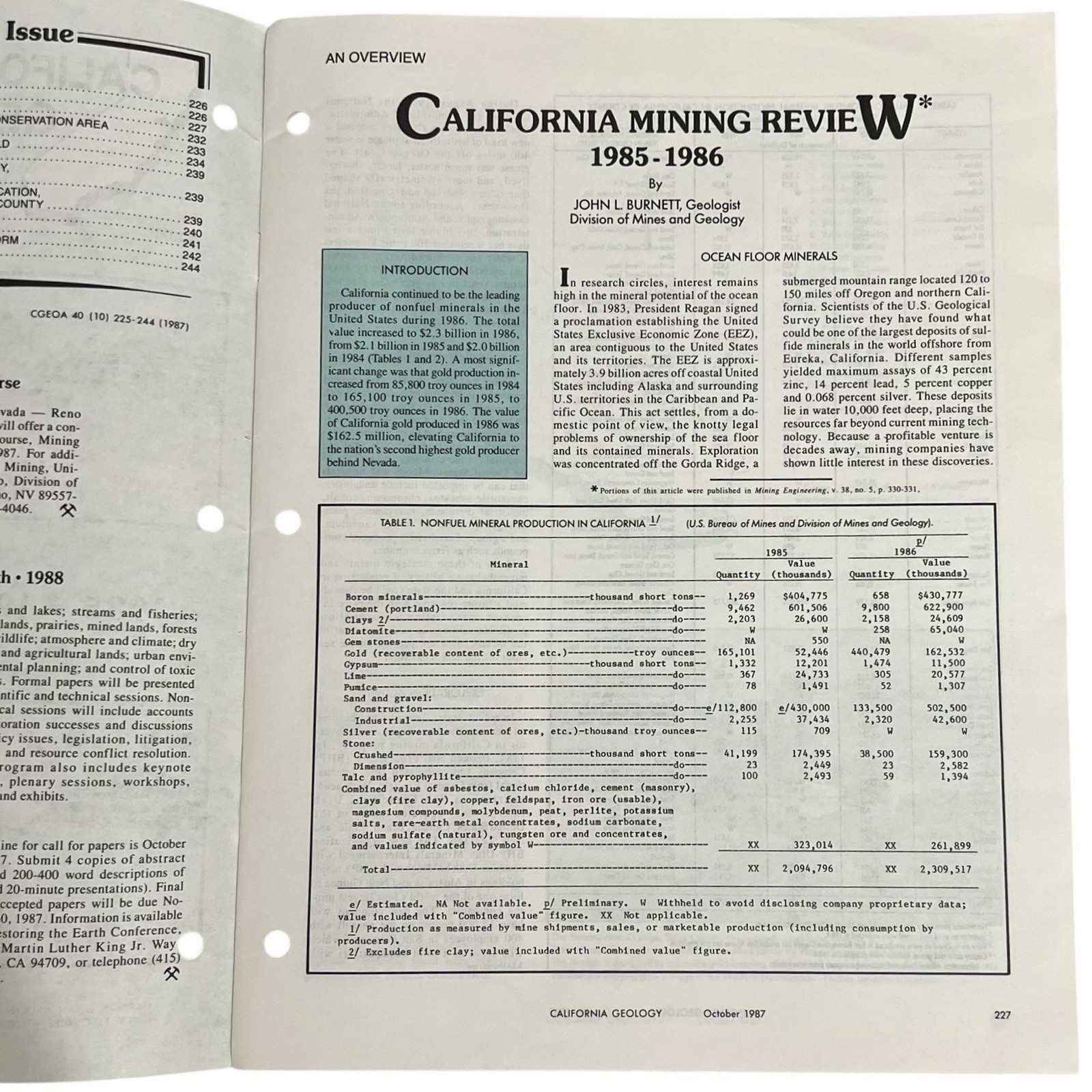 California Geology Magazine Conservation Mines October 1987 Mining Review Gold