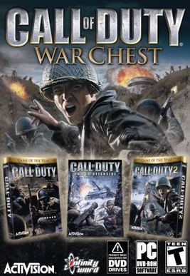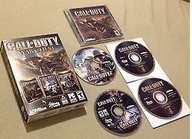 2 DVD with key codes Includes Call of Duty, Call of Duty: United Offensive Expansion Pack, Call of Duty 2. Two CDs are sound track sampler and stratigy guides. All in the small retail box. NO manual.
