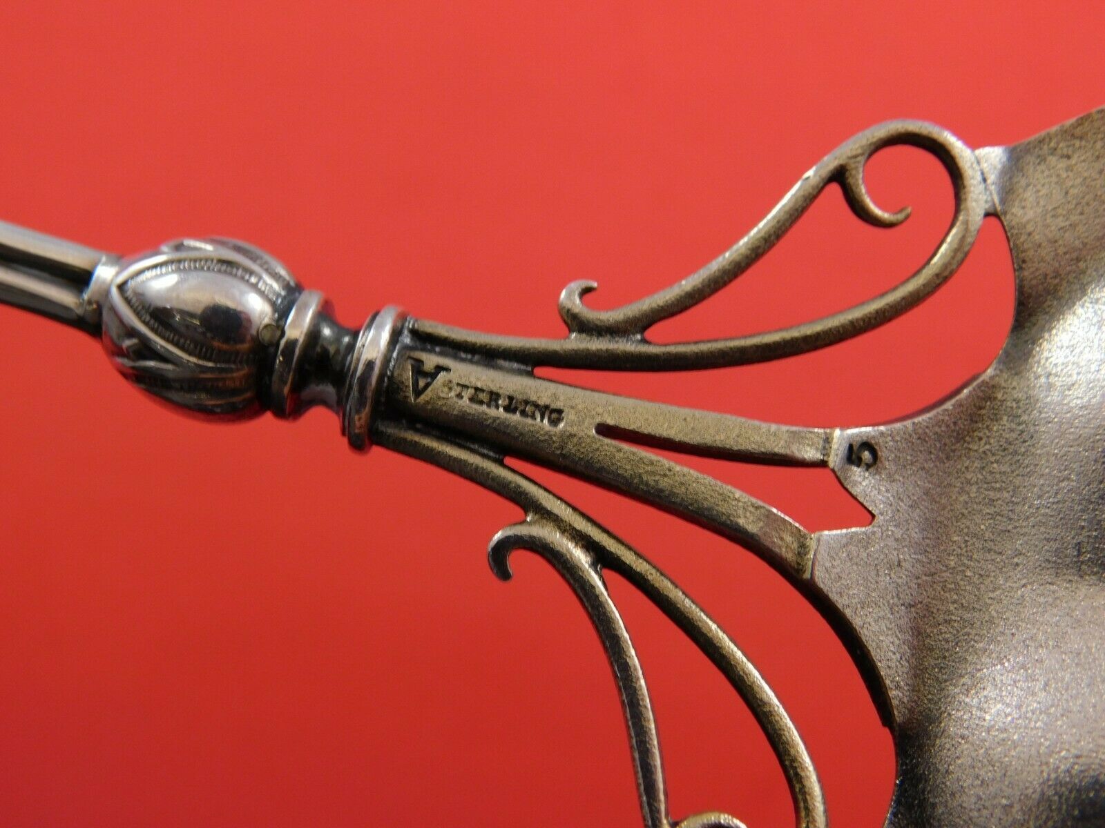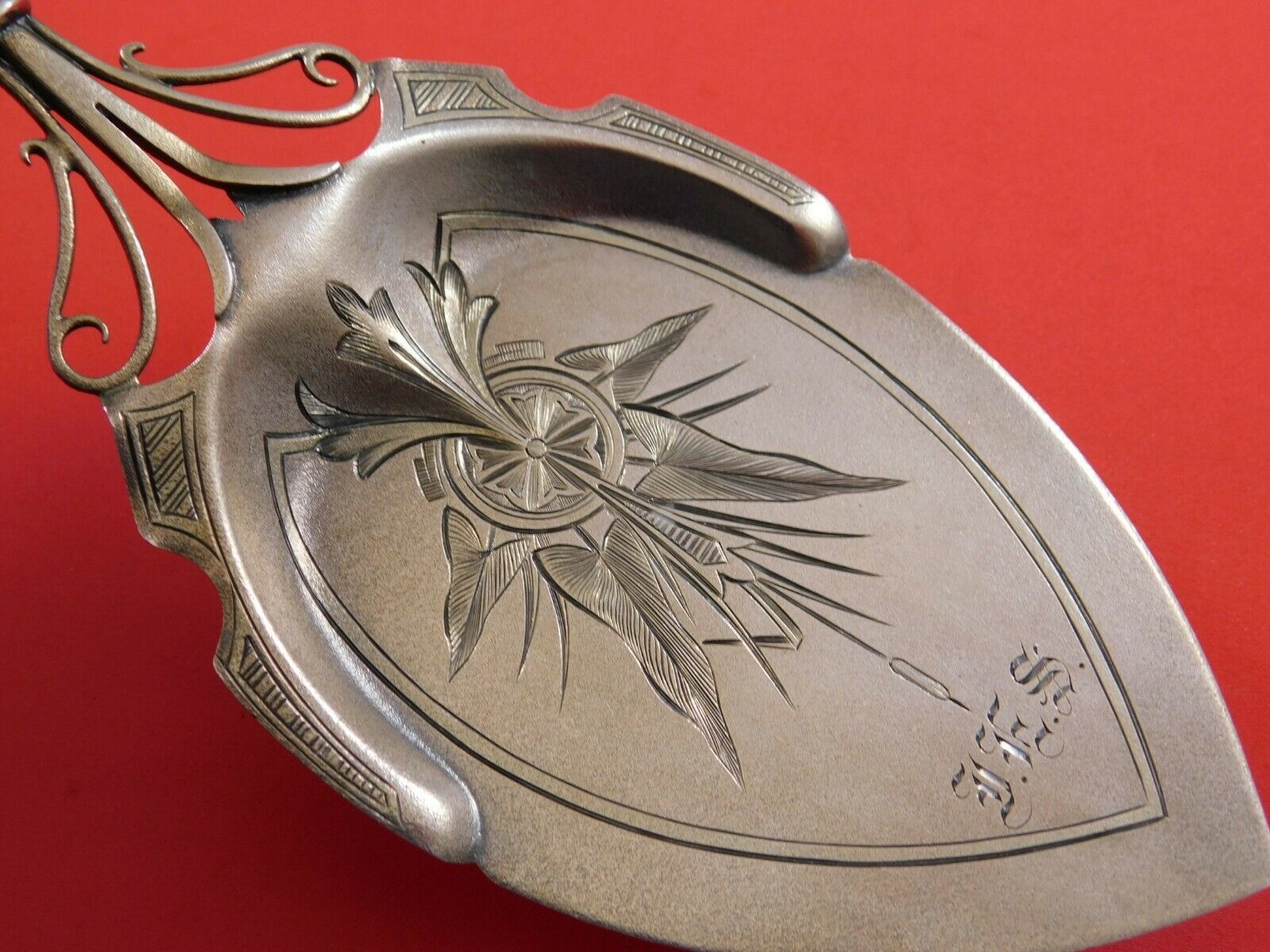 Sterling silver Art Silver Pie Server 11" gold washed, stippled, bright-cut in the pattern Calla Lily by Whiting. It is monogrammed (on the blade) and is in excellent condition.