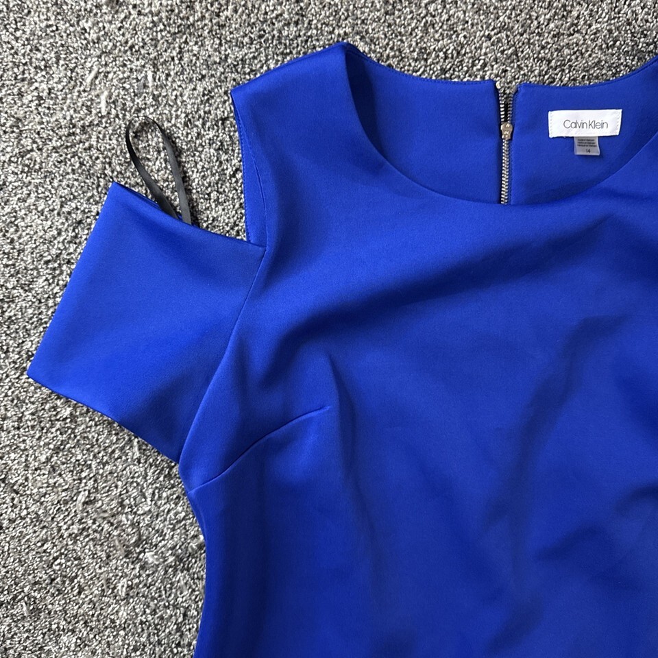 - Calvin Klein Cold Shoulder Dress Size 14 Royal Blue Scuba Back Zip