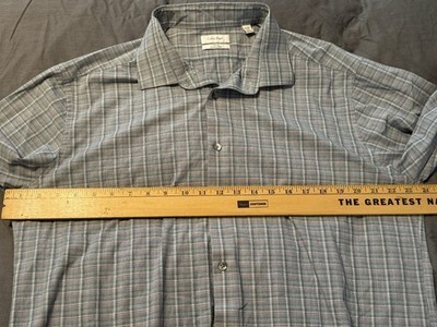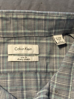 - Calvin Klein Dress Shirt 17-17.5 32/33 Slim Fit 4-Way Stretch Plaid Button Up