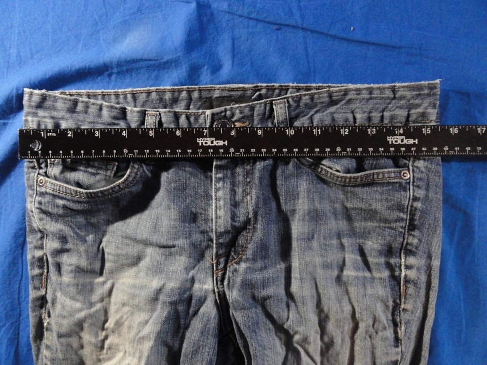 - CALVIN KLEIN JEANS ULTIMATE BOOTCUT BLUE DISTRESSED FADED DENIM PANTS 8R / 29